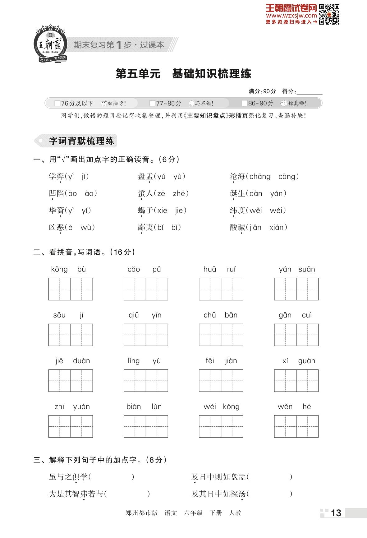 王朝霞期末过课本——第五单元 基础知识梳理练六年级下册语文(人教版)_R230426144121113