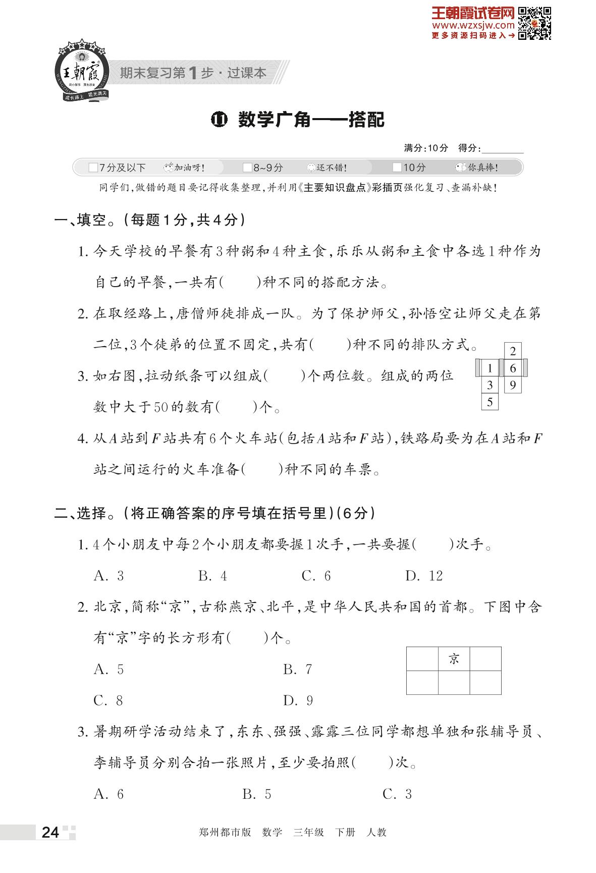 王朝霞期末过课本——11 数学广角:搭配三年级下册数学(人教版)_R230426145501483