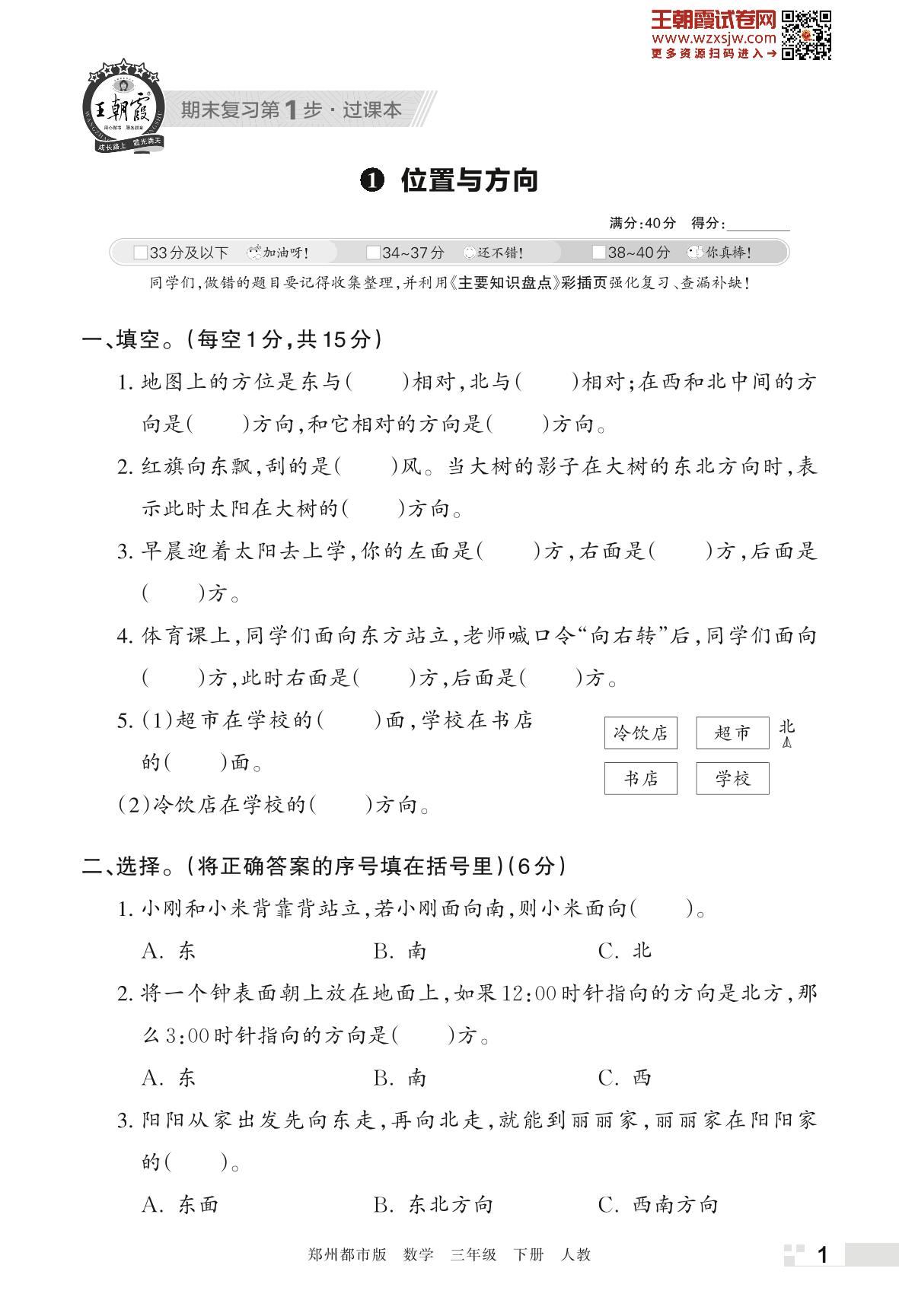 王朝霞期末过课本——1 位置与方向三年级下册数学(人教版)_R230426145502681