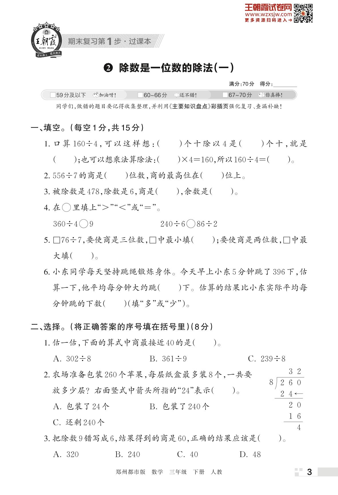王朝霞期末过课本——2 除数是一位数的除法(一)三年级下册数学(人教版)_R230426145502905