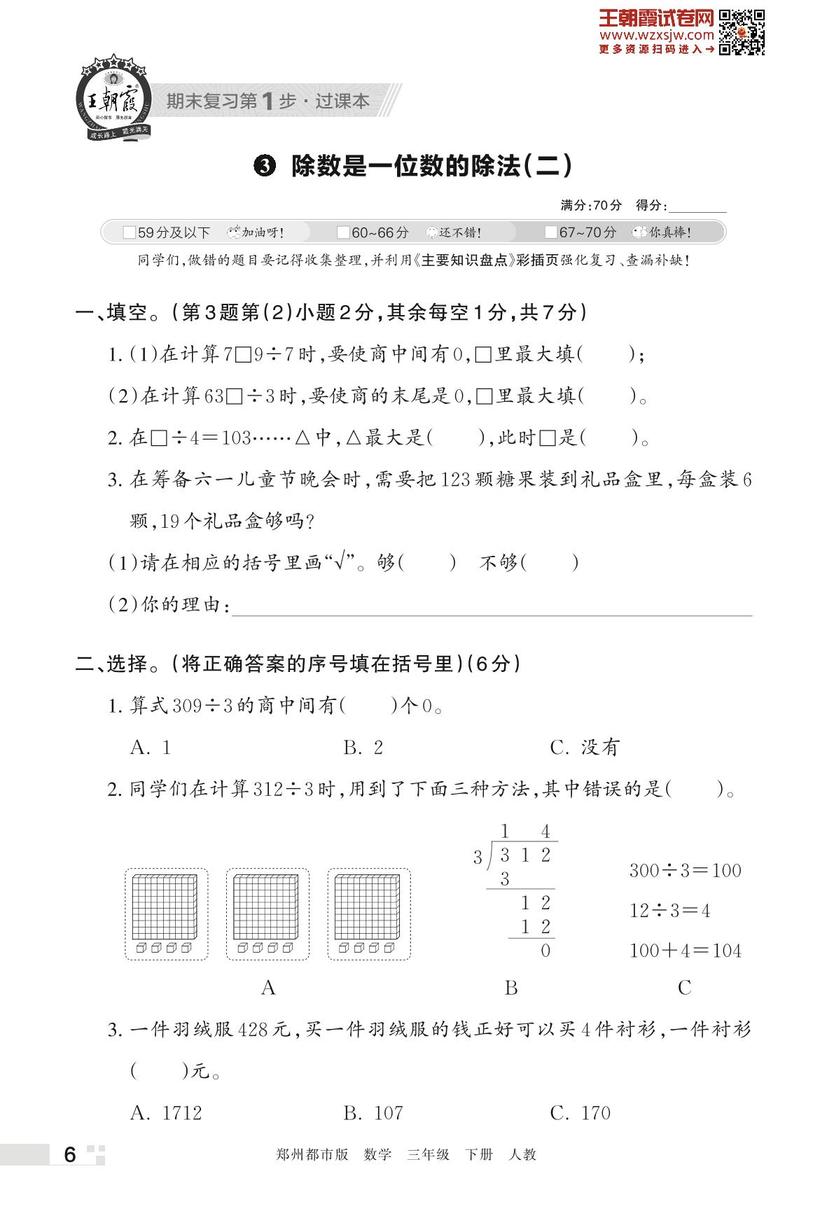 王朝霞期末过课本——3 除数是一位数的除法(二)三年级下册数学(人教版)_R230426145503468