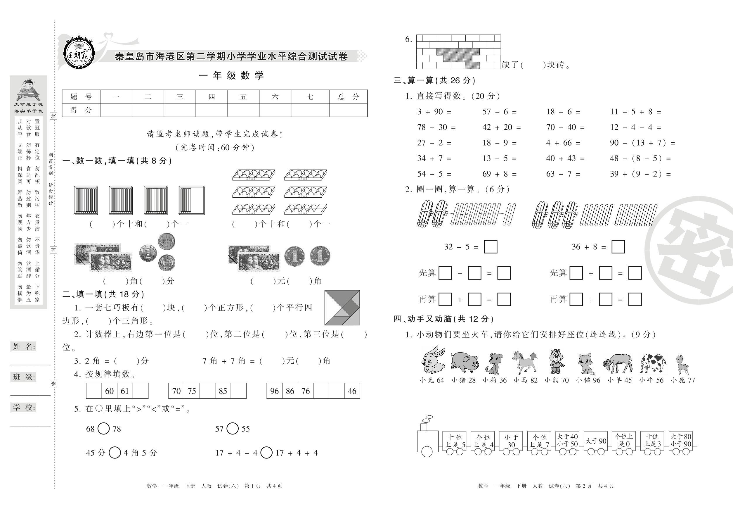 2015-2016学年第二学期秦皇岛市海港区一年级数学试卷(人教版)【6】