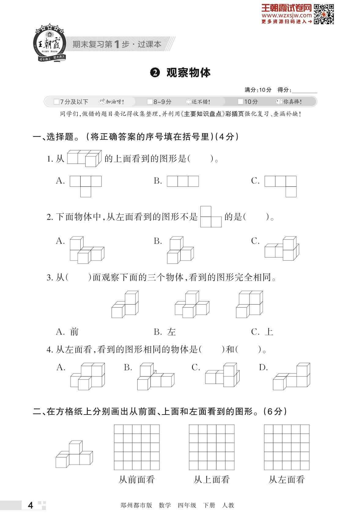 王朝霞期末过课本——2 观察物体四年级下册数学(人教版)_R230426150204643