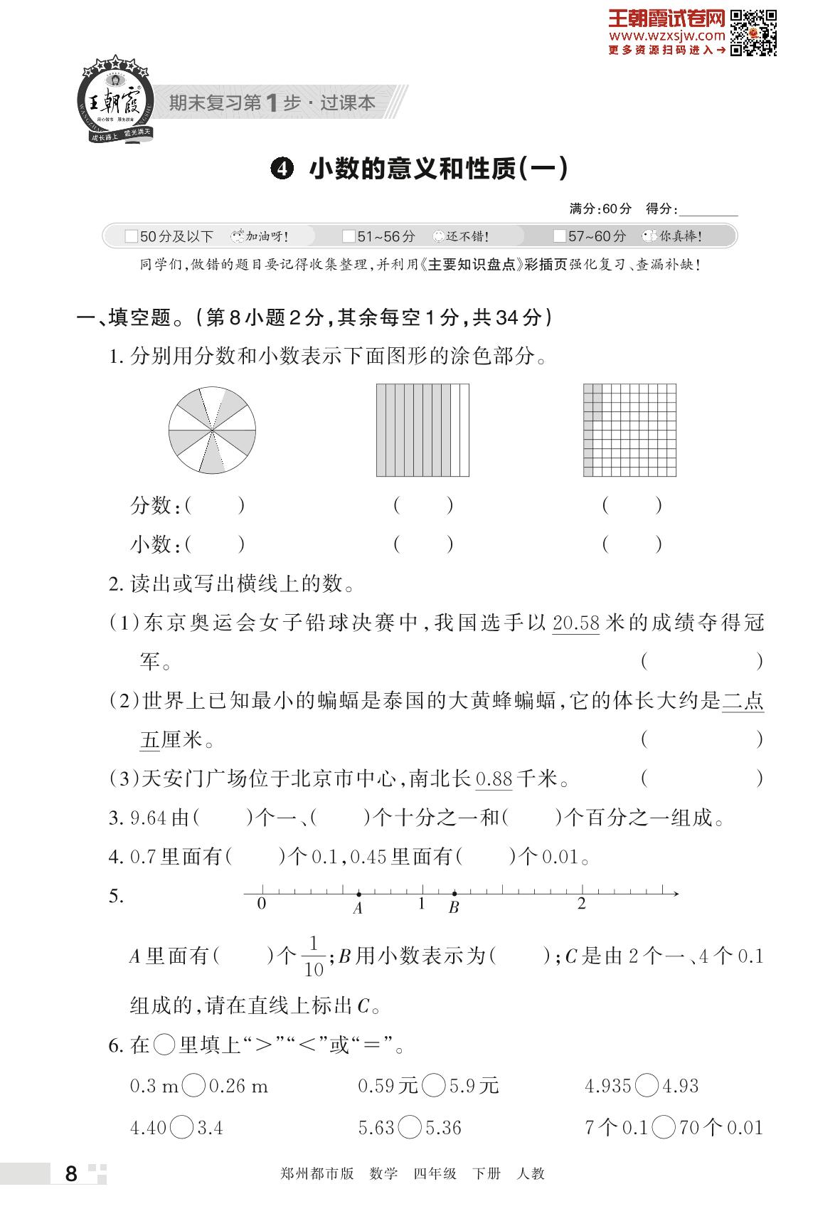 王朝霞期末过课本——4 小数的意义和性质(一)四年级下册数学(人教版)_R230426150205140