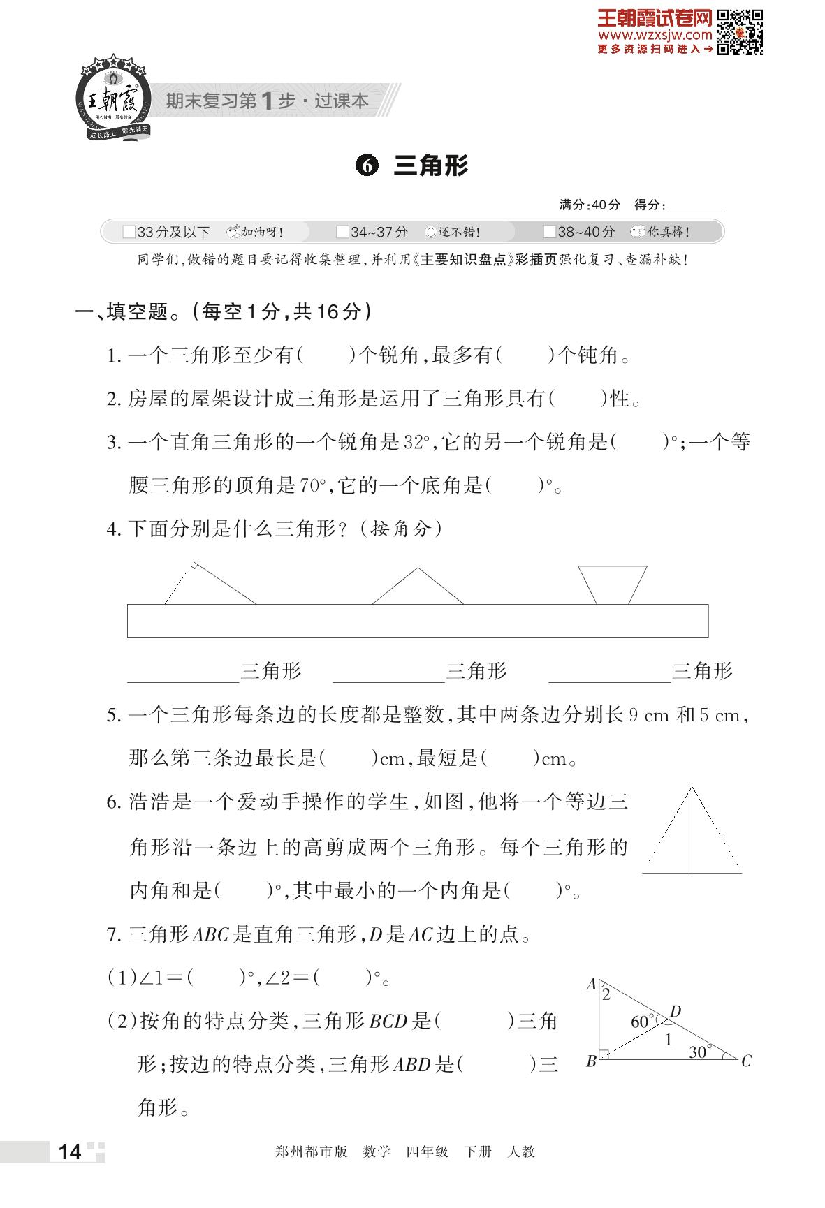 王朝霞期末过课本——6 三角形四年级下册数学(人教版)_R230426150205673