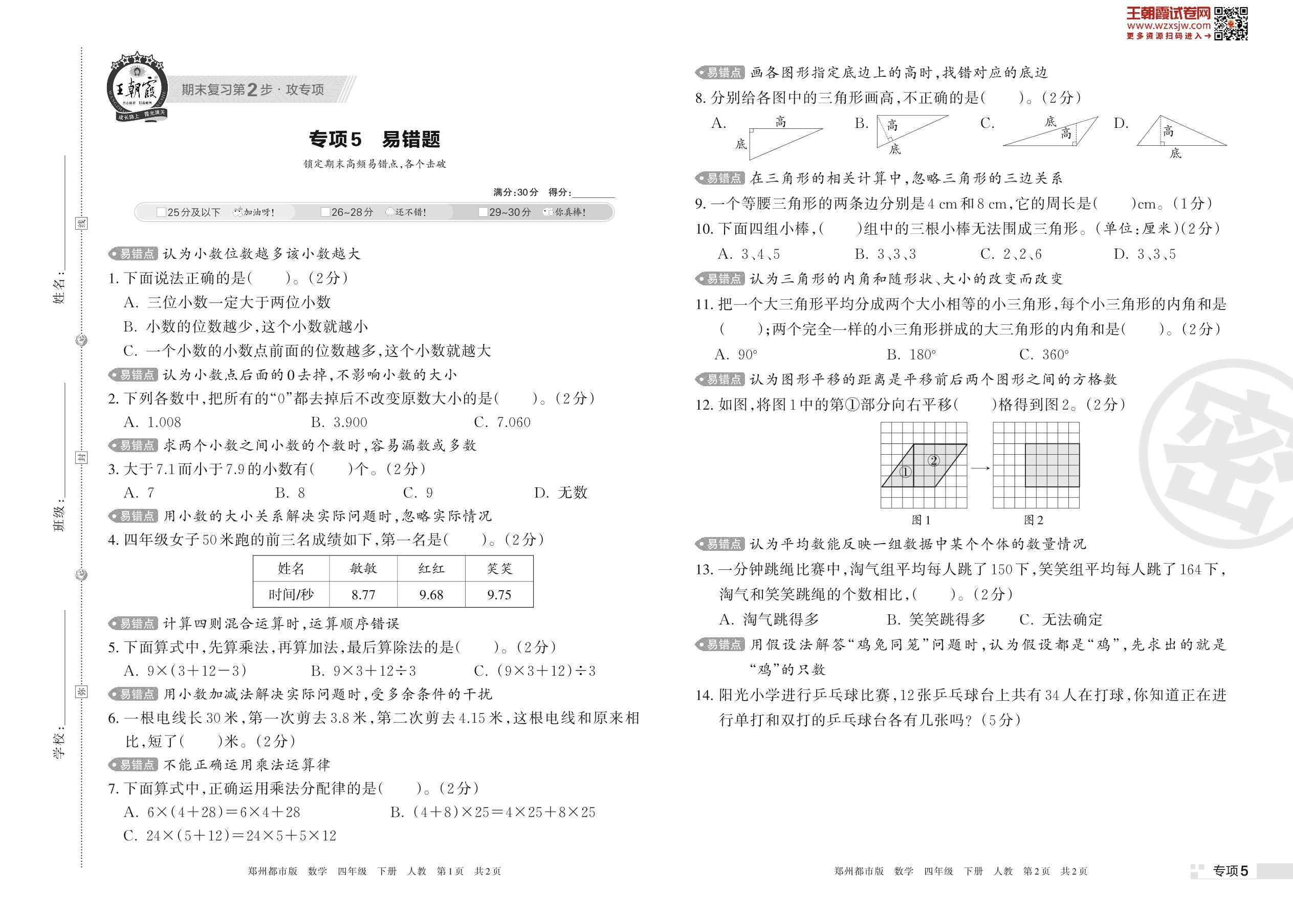 王朝霞期末专项卷——易错题四年级下册数学(人教版)_R230426150205573【5】