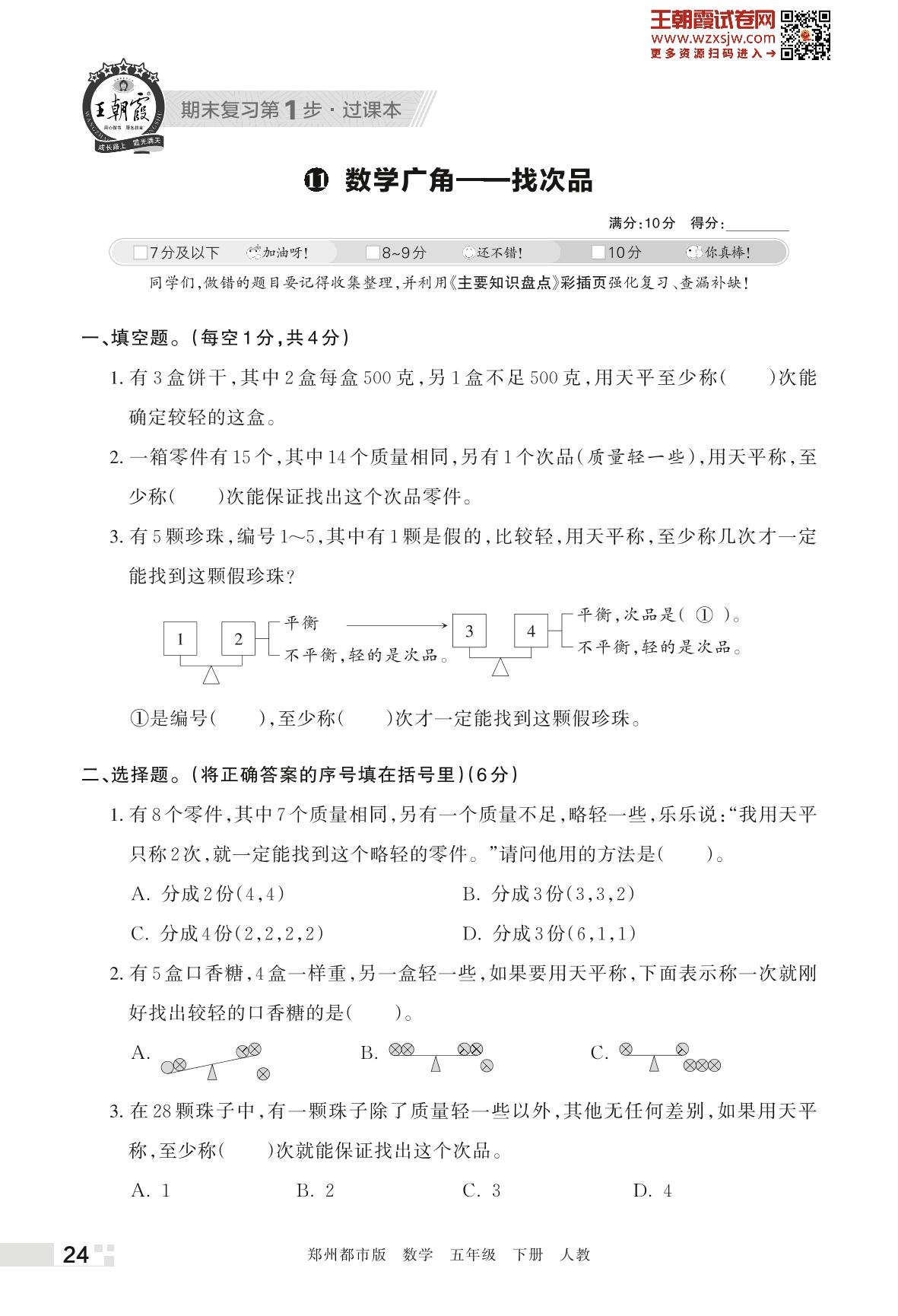 王朝霞期末过课本——11 数学广角:找次品五年级下册数学(人教版)_R230426150723217