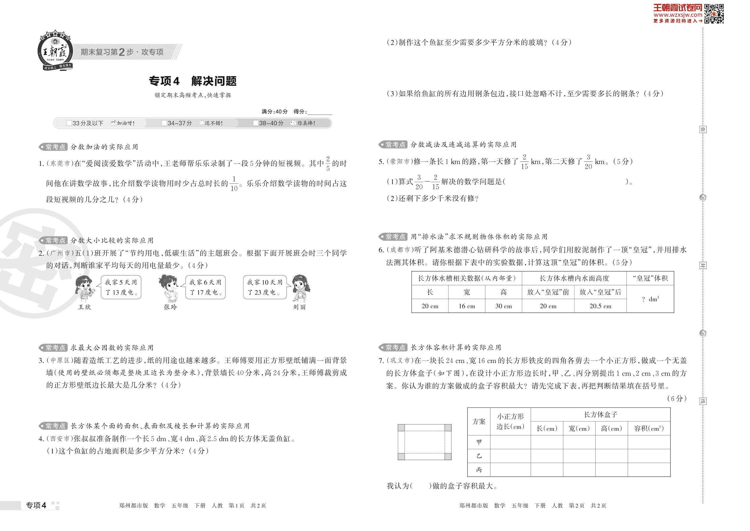 王朝霞期末专项卷——解决问题五年级下册数学(人教版)_R230426150723481【4】