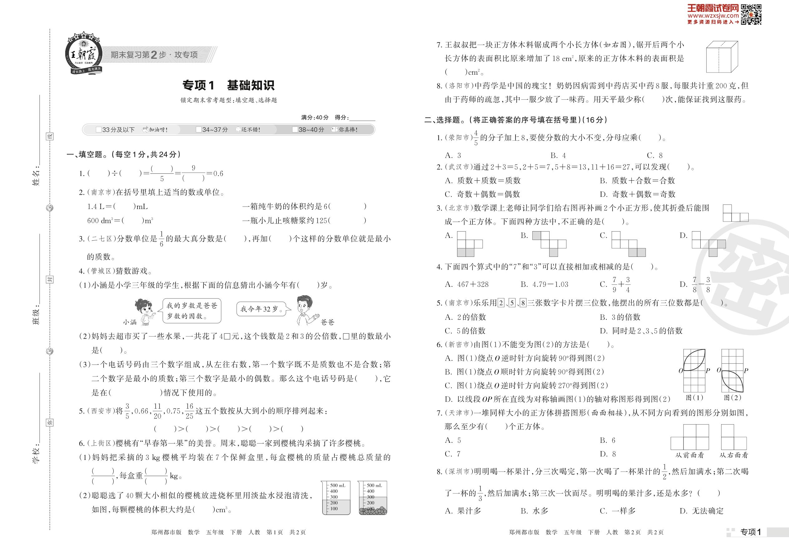 王朝霞期末专项卷——基础知识五年级下册数学(人教版)_R230426150724314【1】