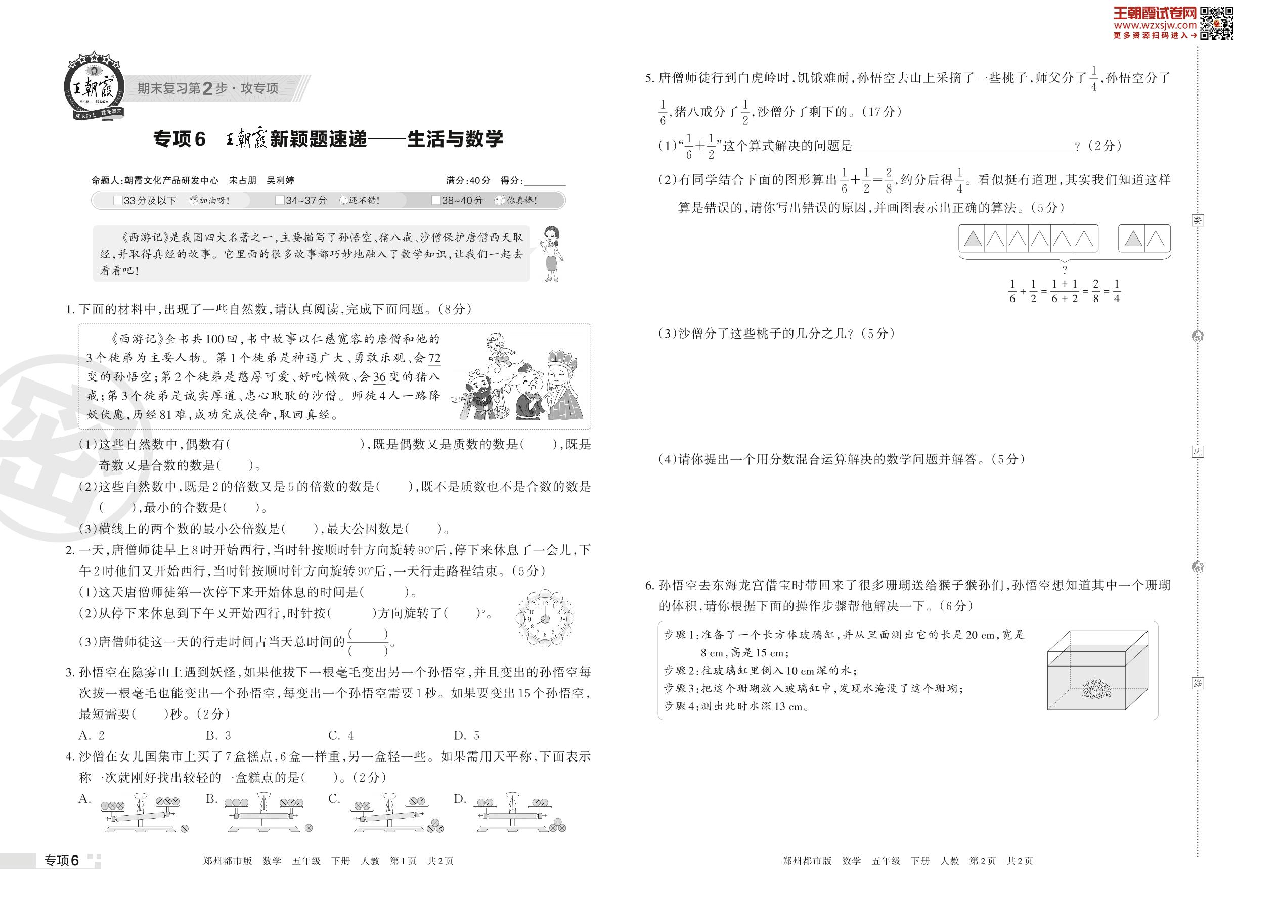 王朝霞期末专项卷——王朝霞新颖题速递:生活与数学五年级下册数学(人教版)_R230426150724841【6】