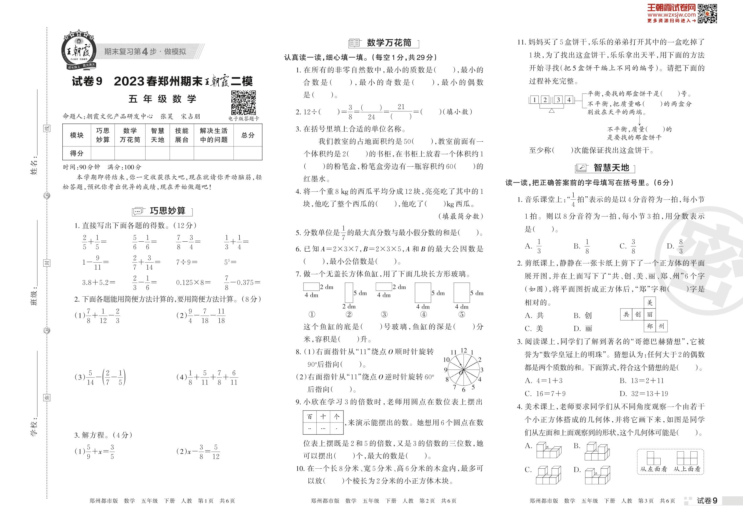 王朝霞期末模拟卷五年级下册数学(人教版)_R230426150725611【9】