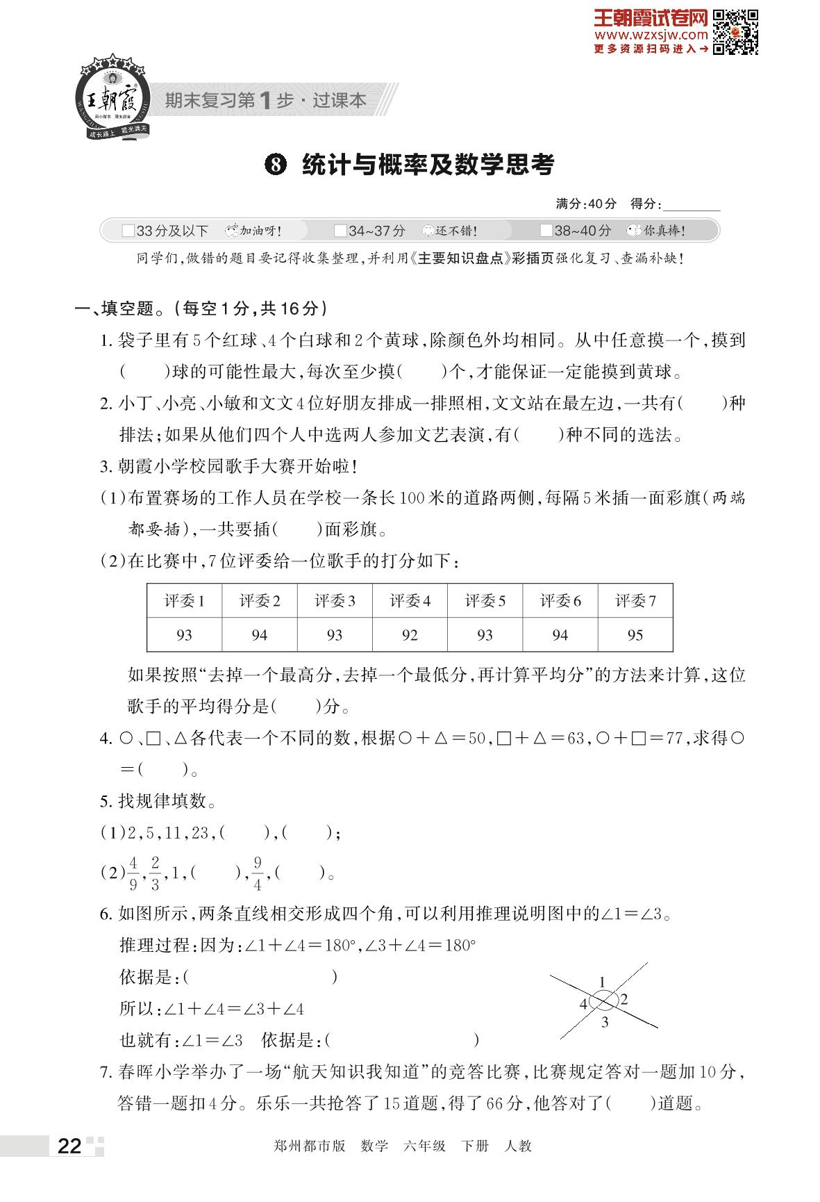 王朝霞期末过课本——8 统计与概率及数学思考六年级下册数学(人教版)_R230426151326871