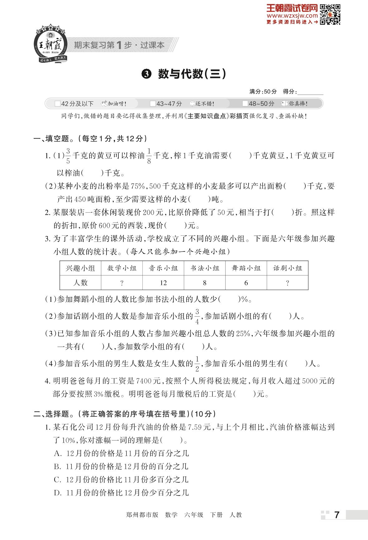 王朝霞期末过课本——3 数与代数(三)六年级下册数学(人教版)_R230426151327279