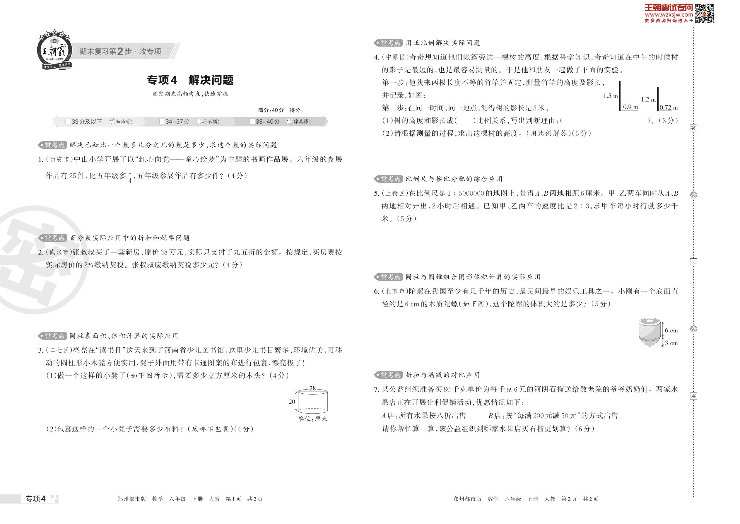 王朝霞期末专项卷——解决问题六年级下册数学(人教版)_R230426151327219【4】