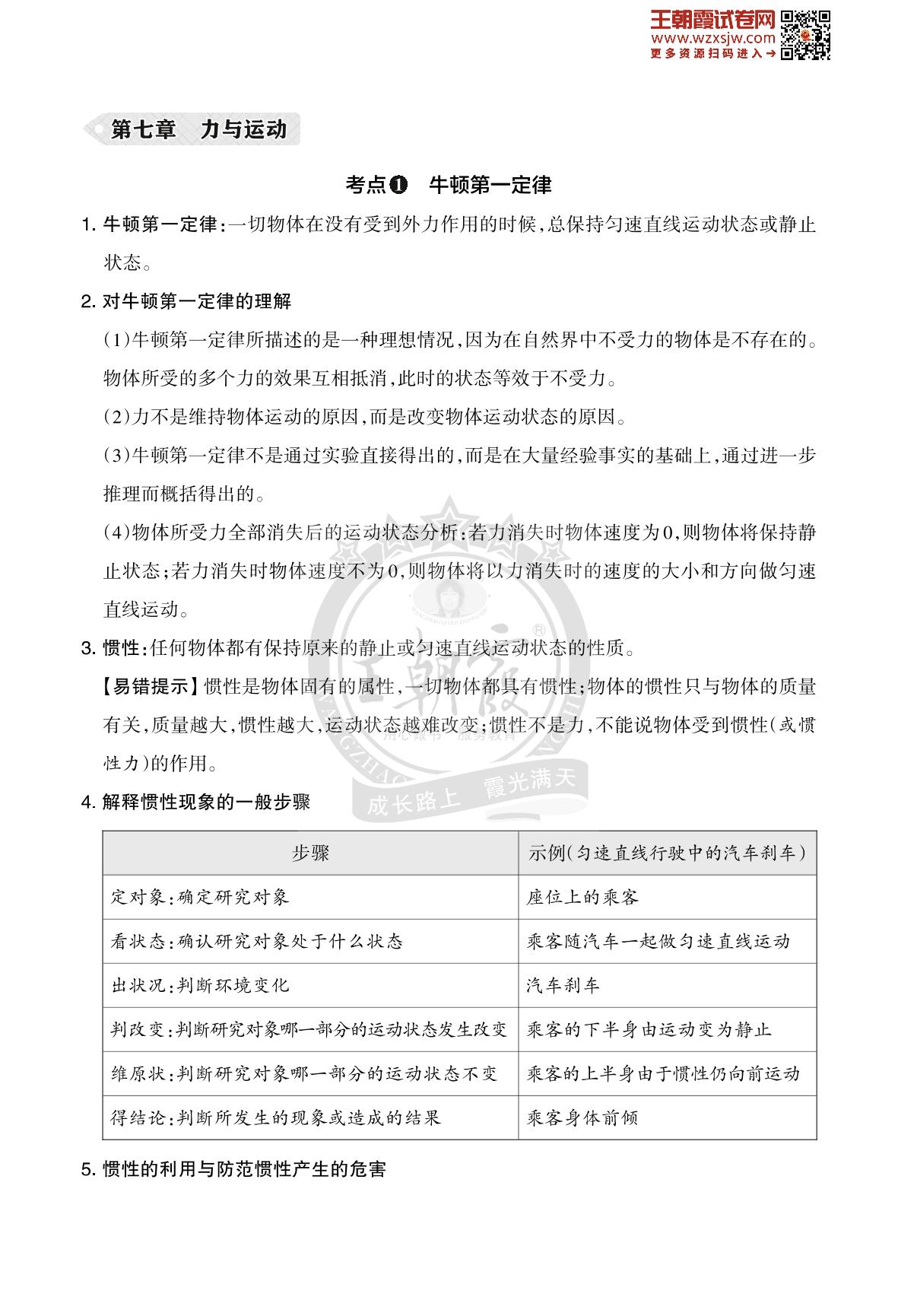 王朝霞期末知识梳理——第七章 力与运动八年级下册物理(沪科版)_R230426162719018