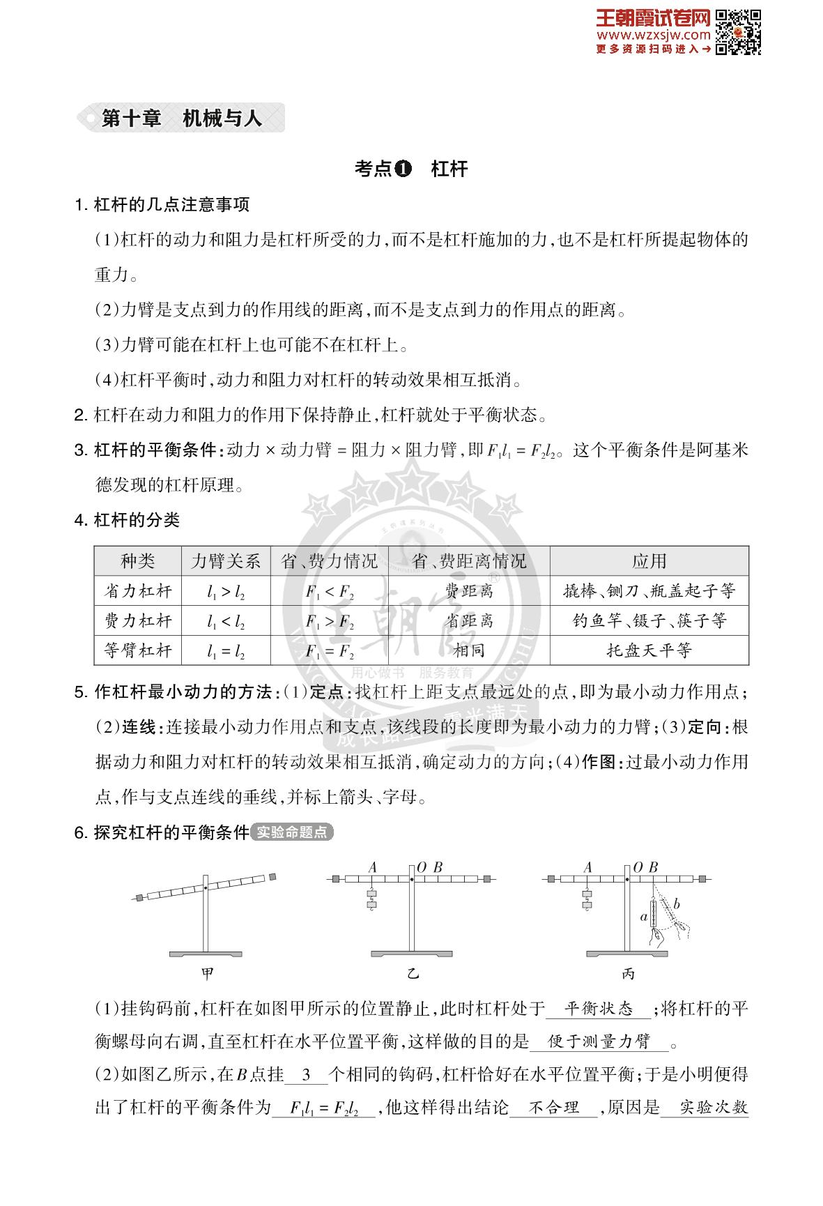 王朝霞期末知识梳理——第十章 机械与人八年级下册物理(沪科版)_R230426162720419