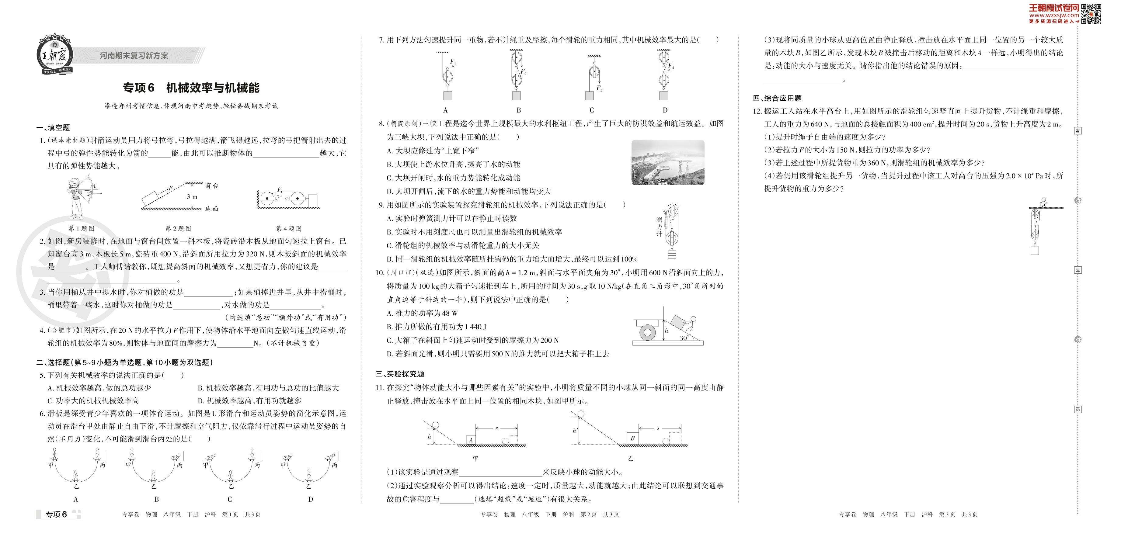 王朝霞期末专项卷——机械效率与机械能八年级下册物理(沪科版)【6】