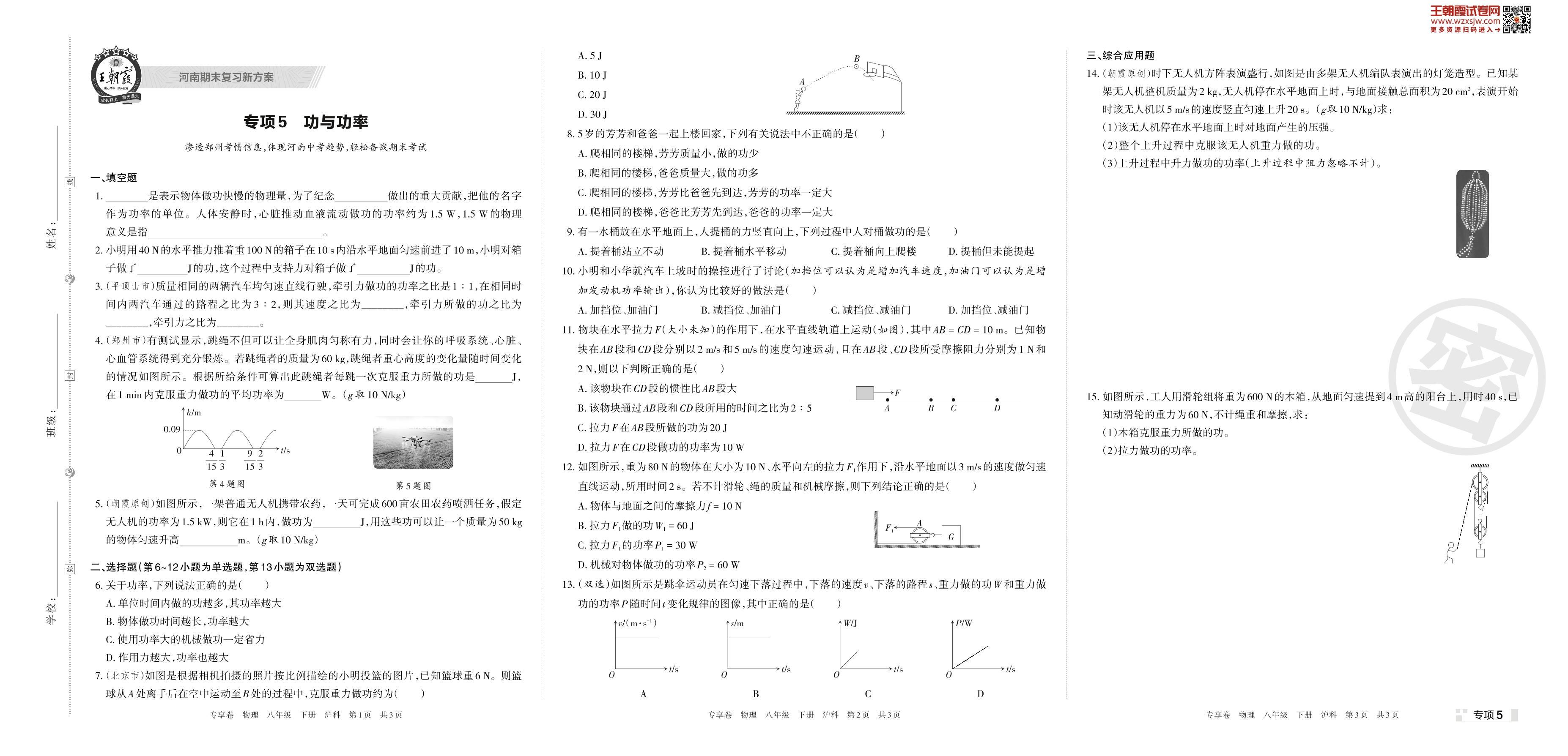 王朝霞期末专项卷——功与功率八年级下册物理(沪科版)【5】