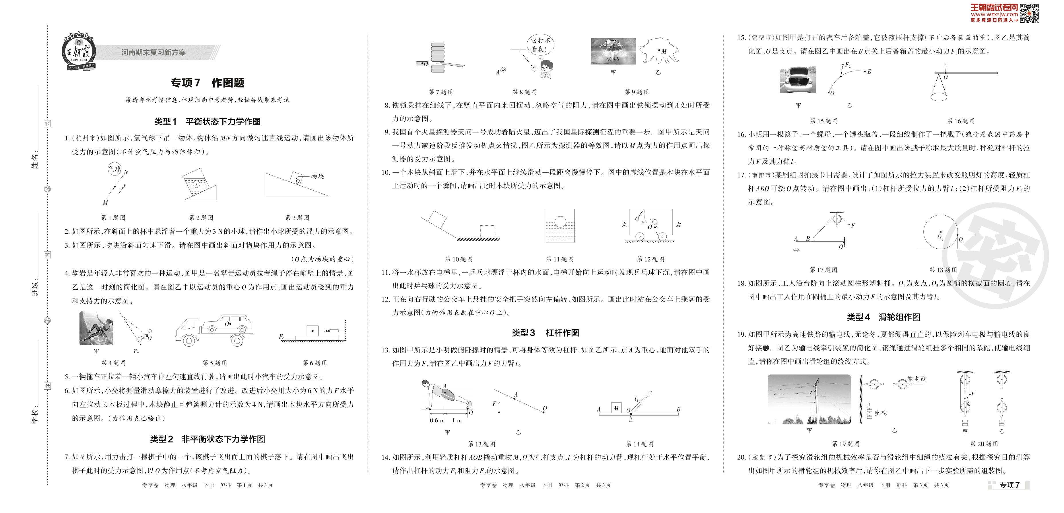 王朝霞期末专项卷——作图题八年级下册物理(沪科版)【7】