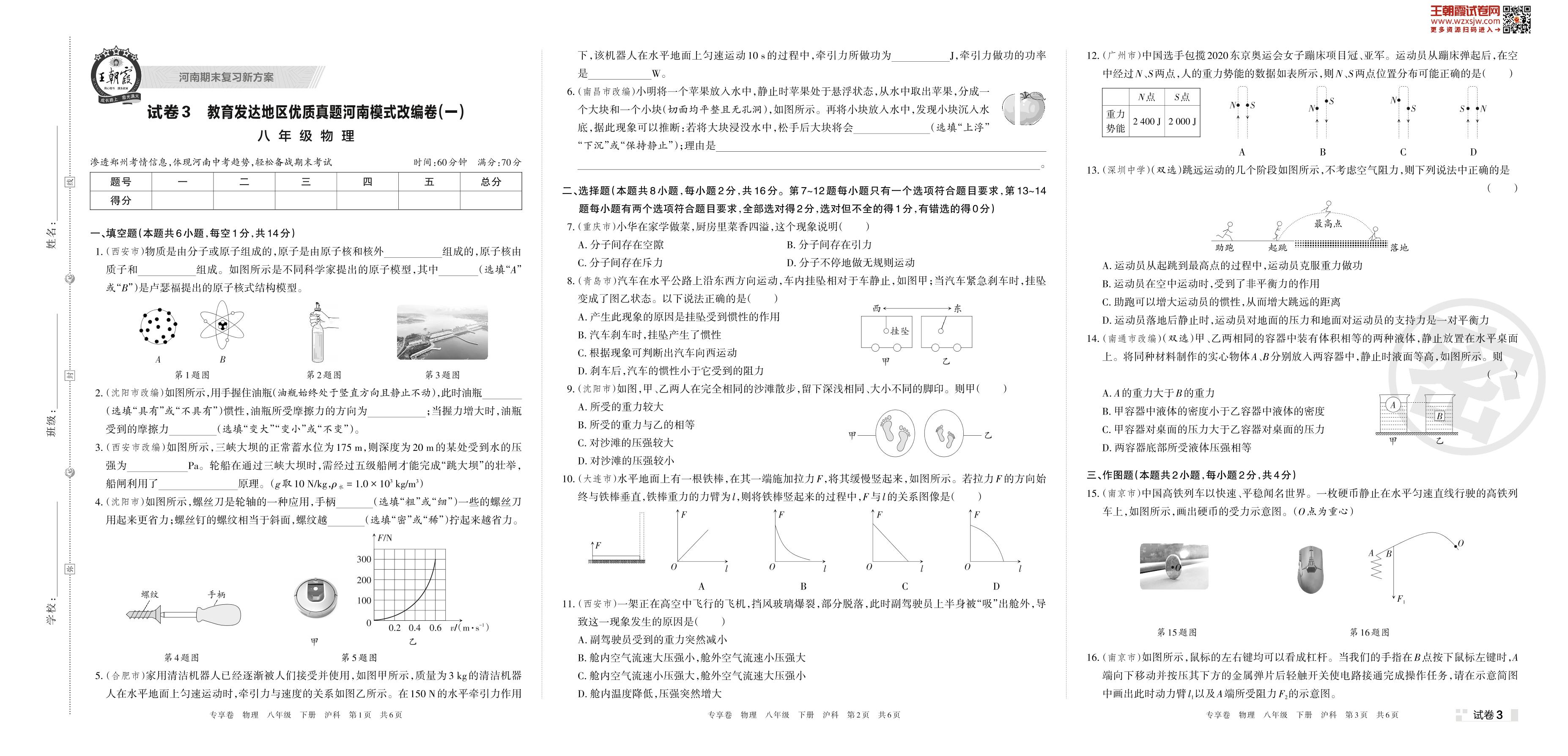 教育发达地区优质真题河南模式改编卷(一)八年级下册物理(沪科版)【3】