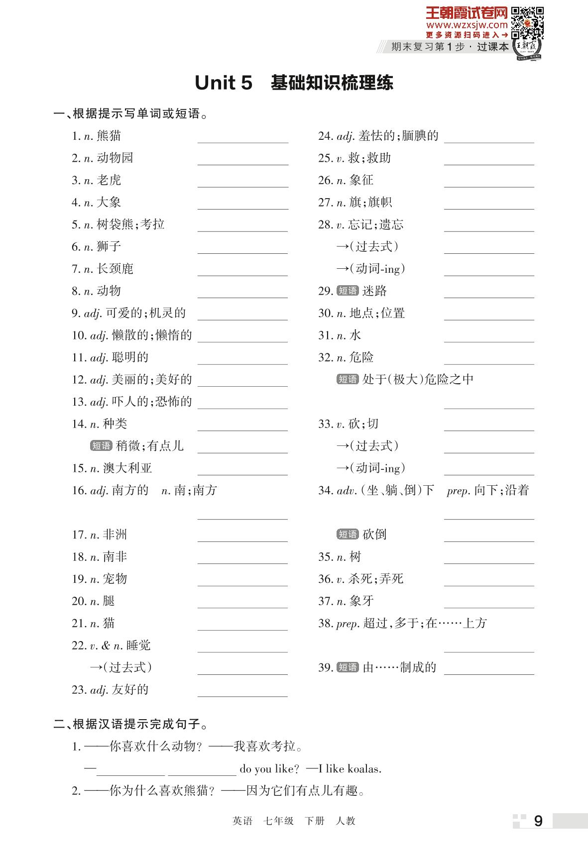 王朝霞期末过课本——Unit 5 基础知识梳理练七年级下册英语(人教版)_R230426163359796