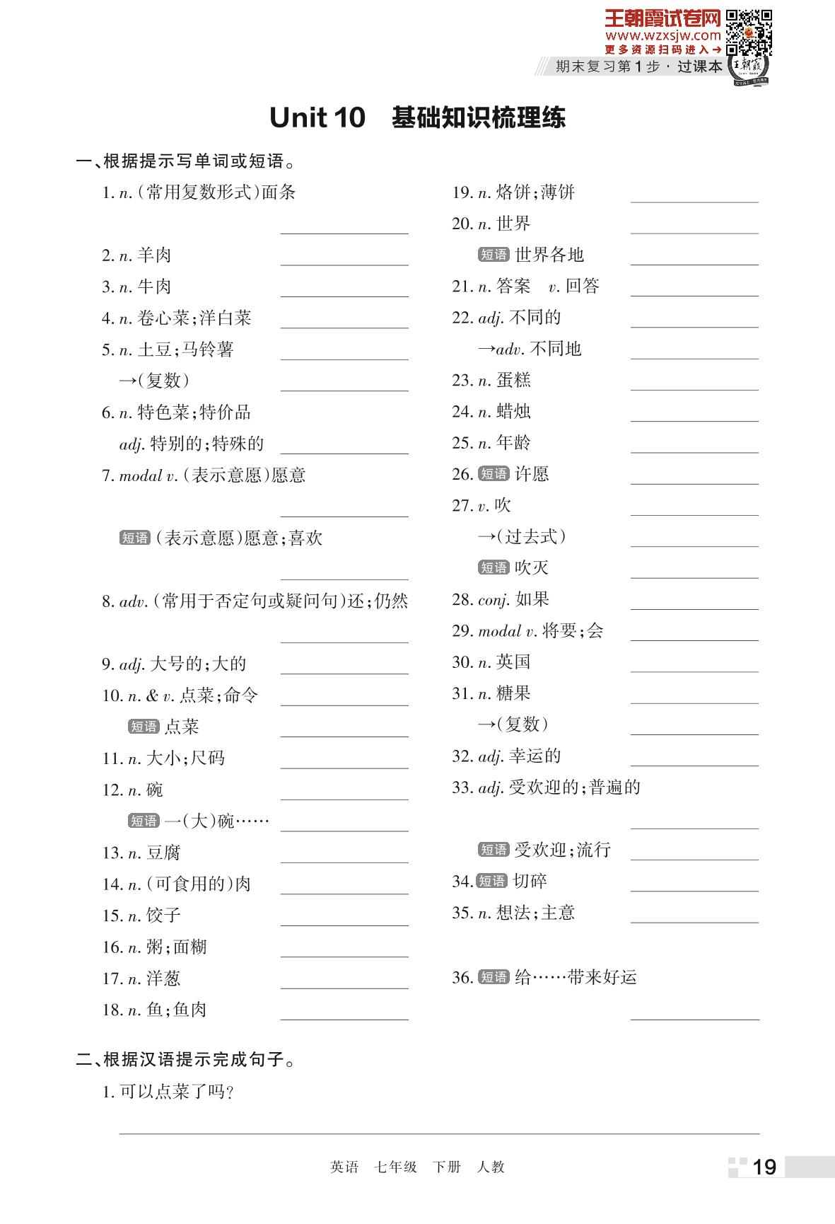 王朝霞期末过课本——Unit 10 基础知识梳理练七年级下册英语(人教版)_R230426163359054
