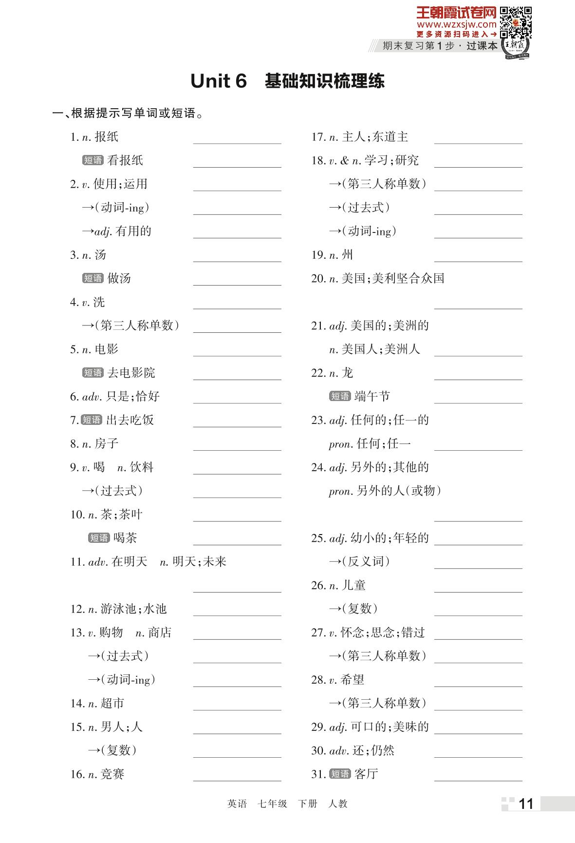 王朝霞期末过课本——Unit 6 基础知识梳理练七年级下册英语(人教版)_R230426163400656