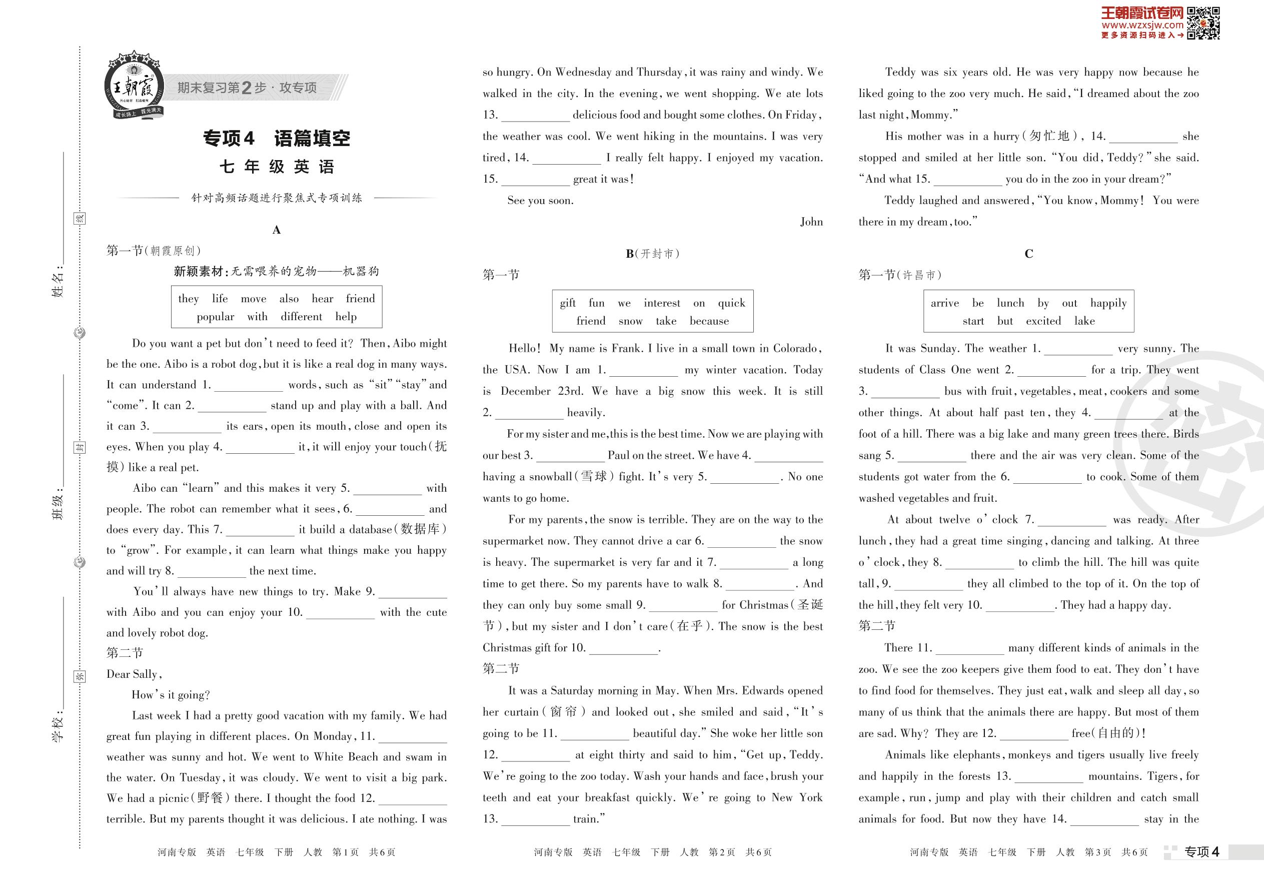 王朝霞期末专项卷——语篇填空七年级下册英语(人教版)_R230426163401382【4】