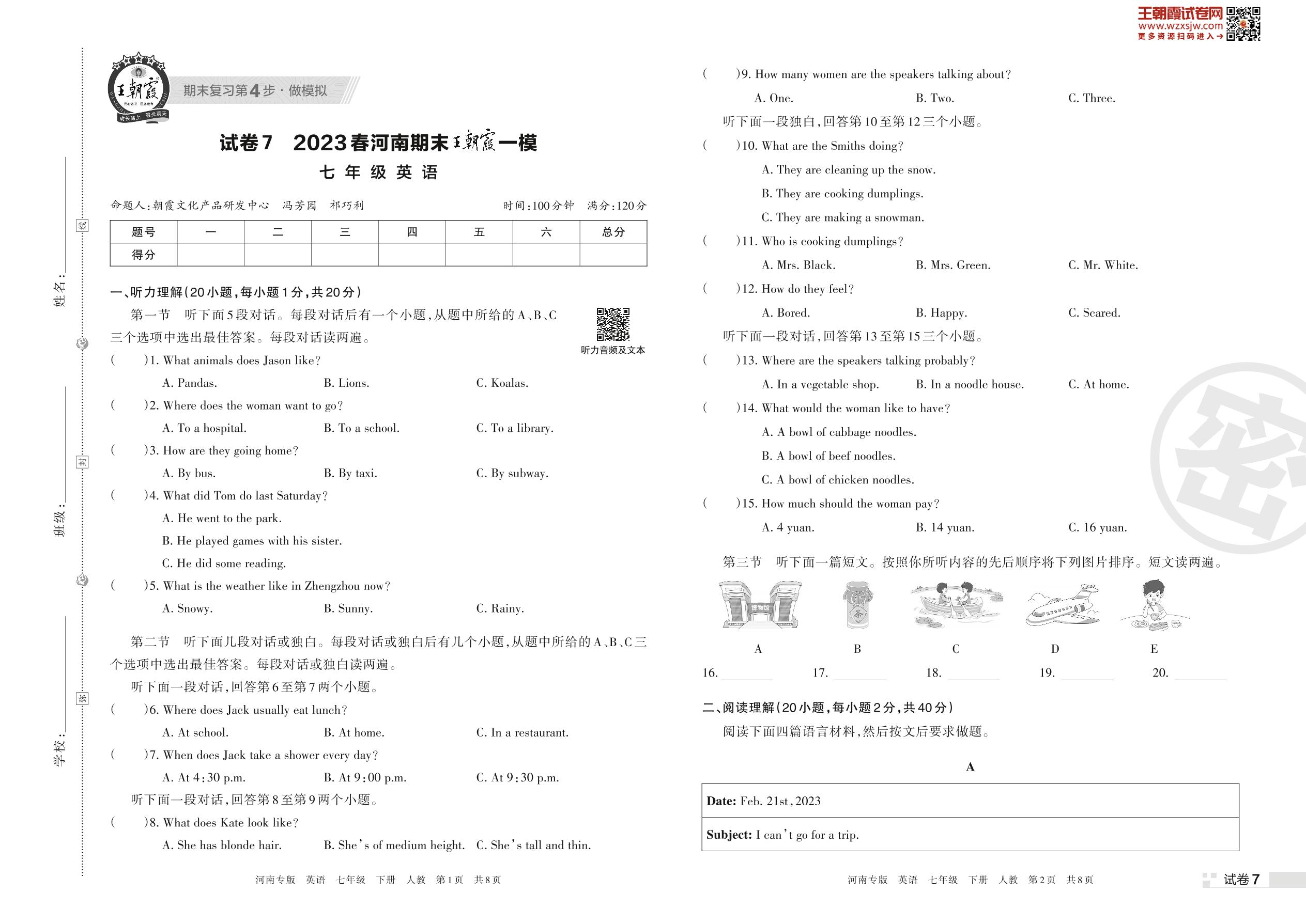 王朝霞期末模拟卷七年级下册英语(人教版)_R230426163402947【7】