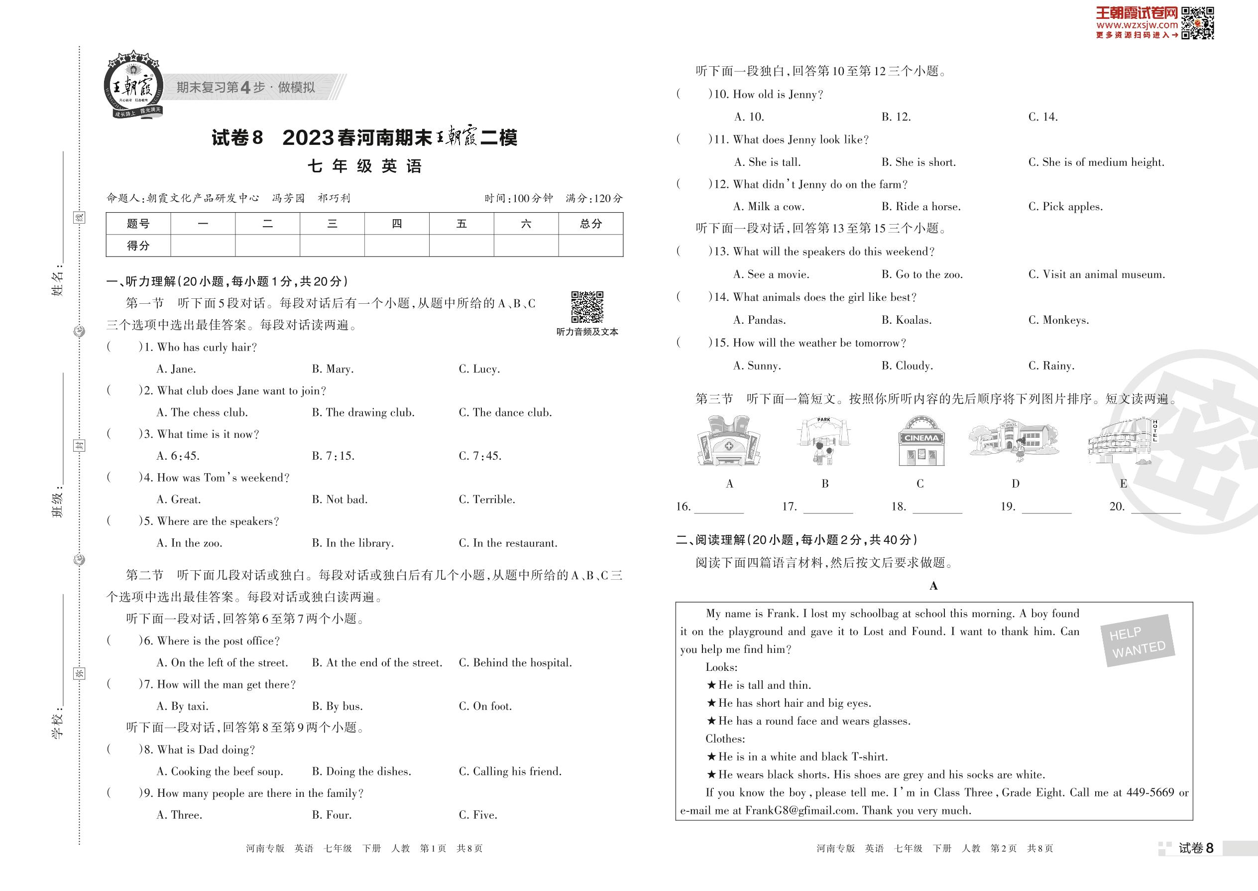 王朝霞期末模拟卷七年级下册英语(人教版)_R230426163402593【8】