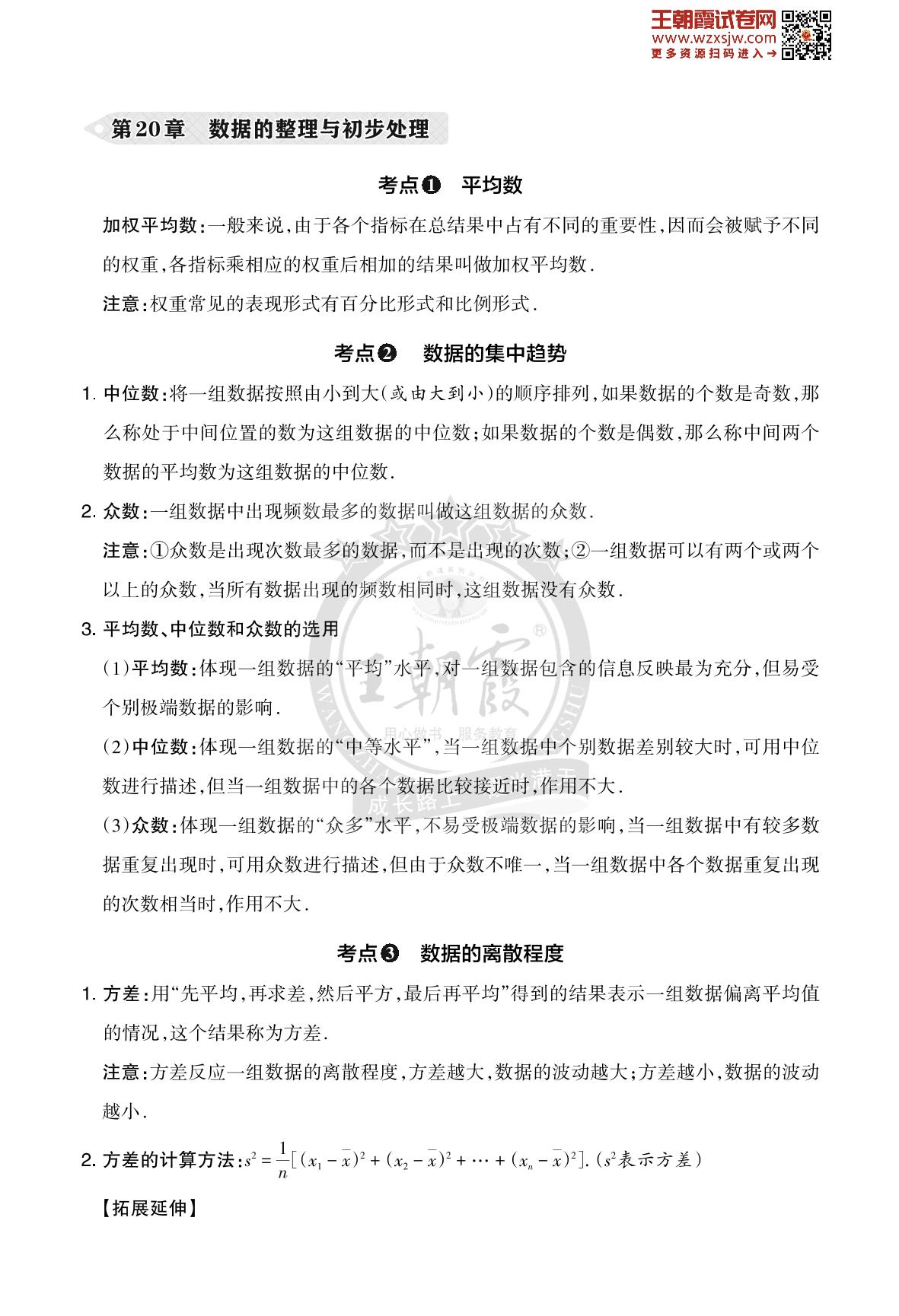 王朝霞期末知识梳理——第20章 数据的整理与初步处理八年级下册数学(华师版)_R230426163839202