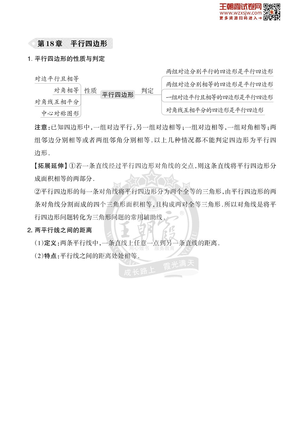 王朝霞期末知识梳理——第18章 平行四边形八年级下册数学(华师版)_R230426163839904
