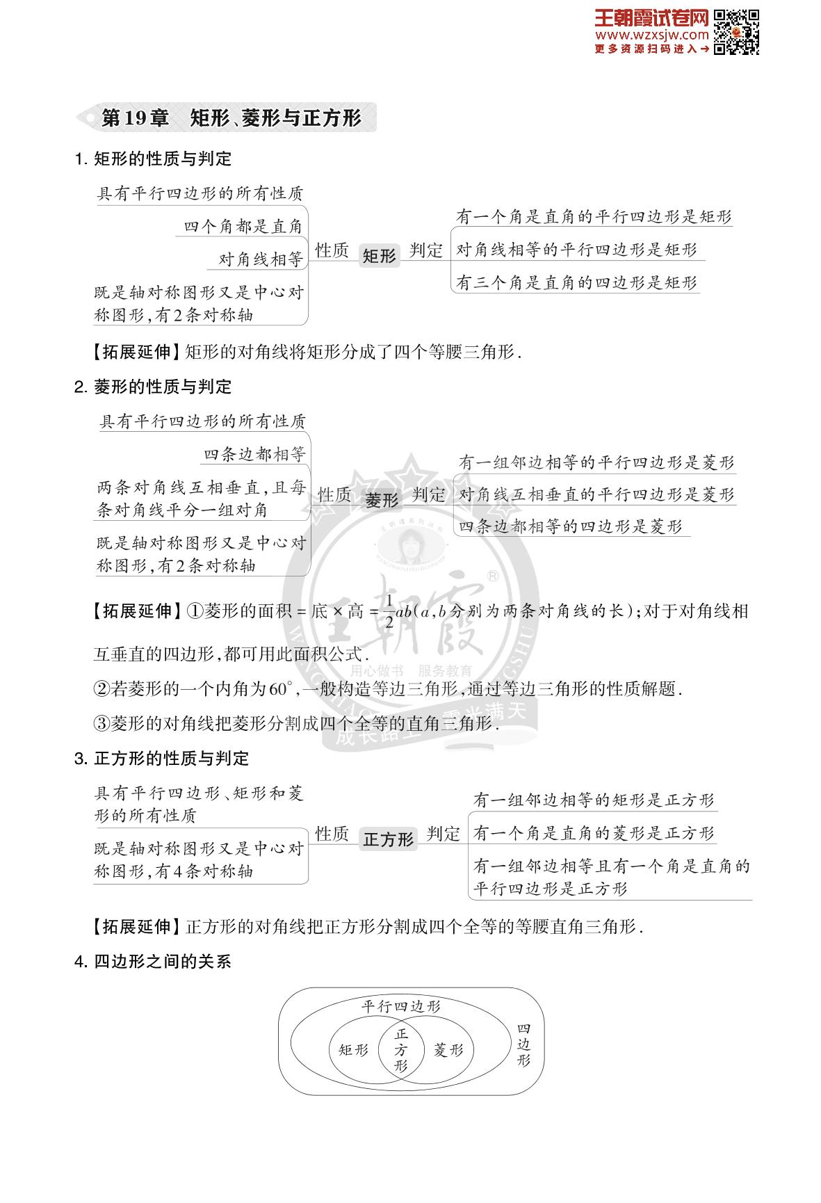 王朝霞期末知识梳理——第19章 矩形、菱形与正方形八年级下册数学(华师版)_R230426163839634