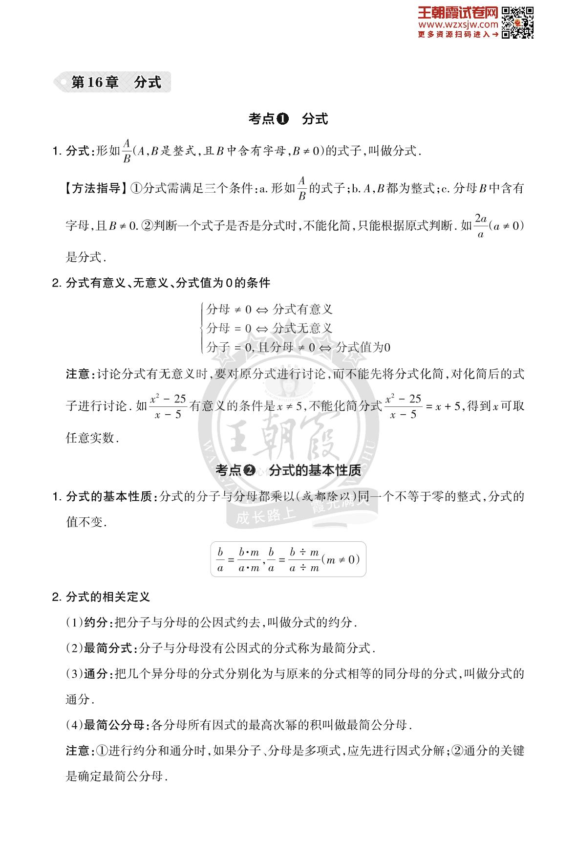 王朝霞期末知识梳理——第16章 分式八年级下册数学(华师版)_R230426163839578