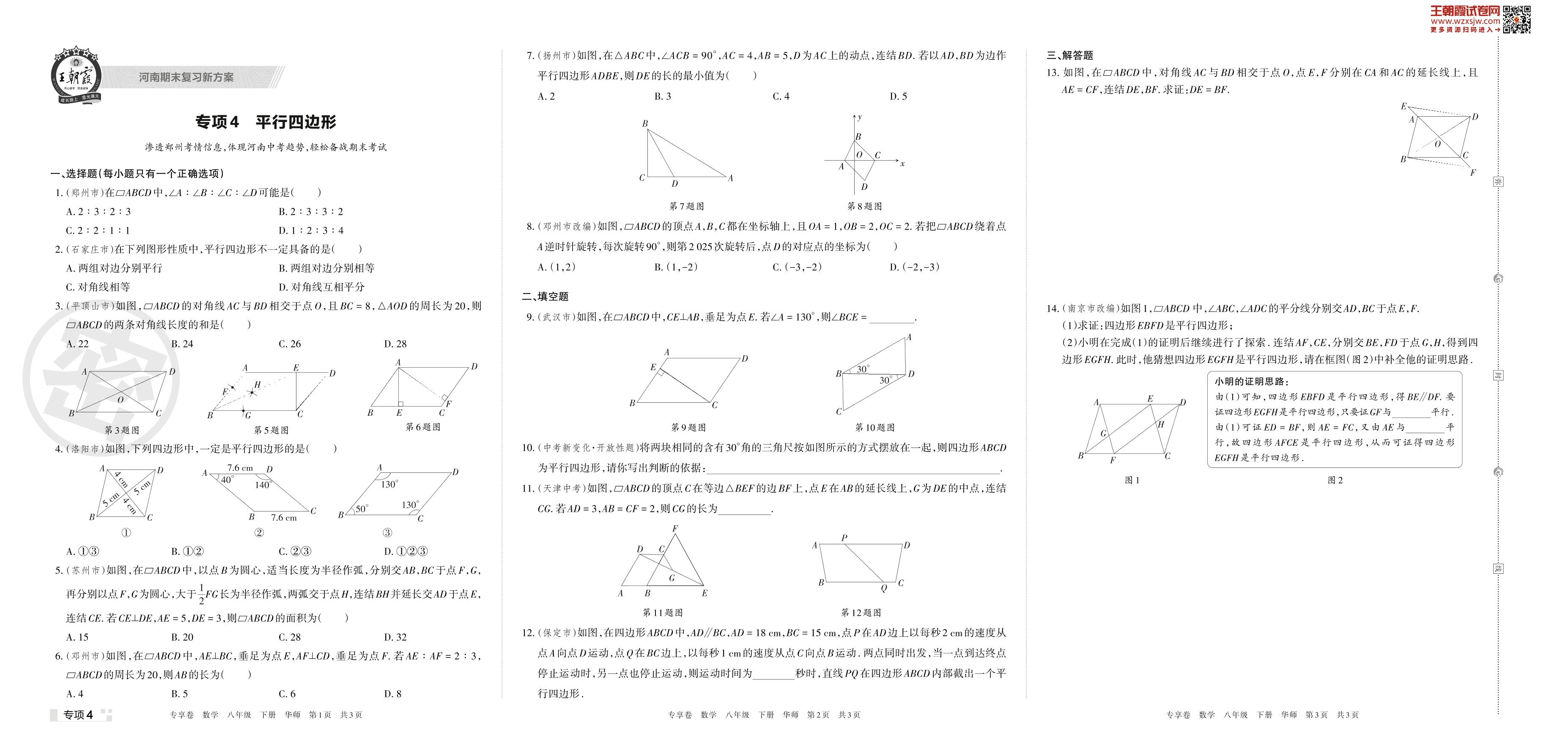 王朝霞期末专项卷——平行四边形八年级下册数学(华师版)【4】