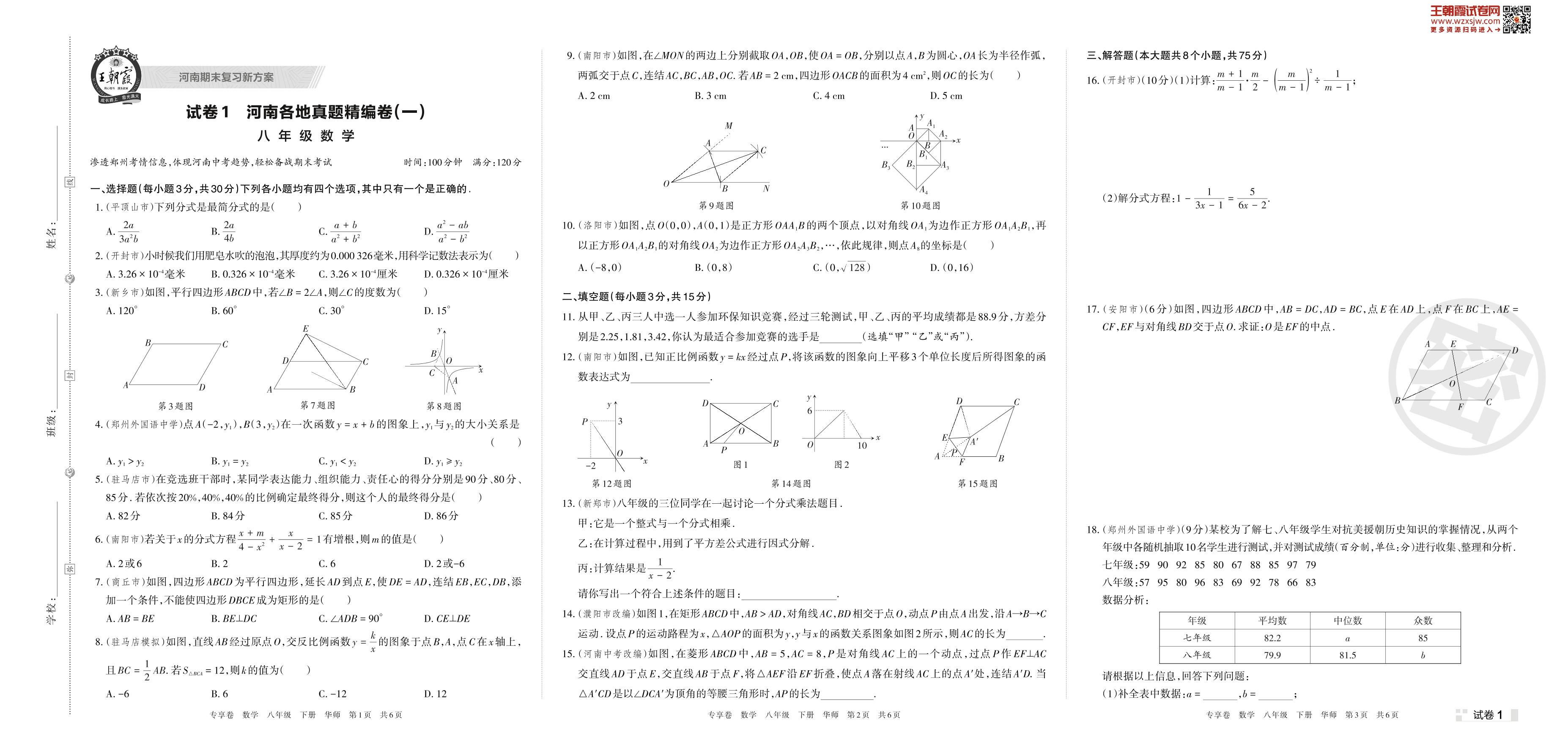 河南各地真题精编卷(一)八年级下册数学(华师版)_R230426163841775【1】