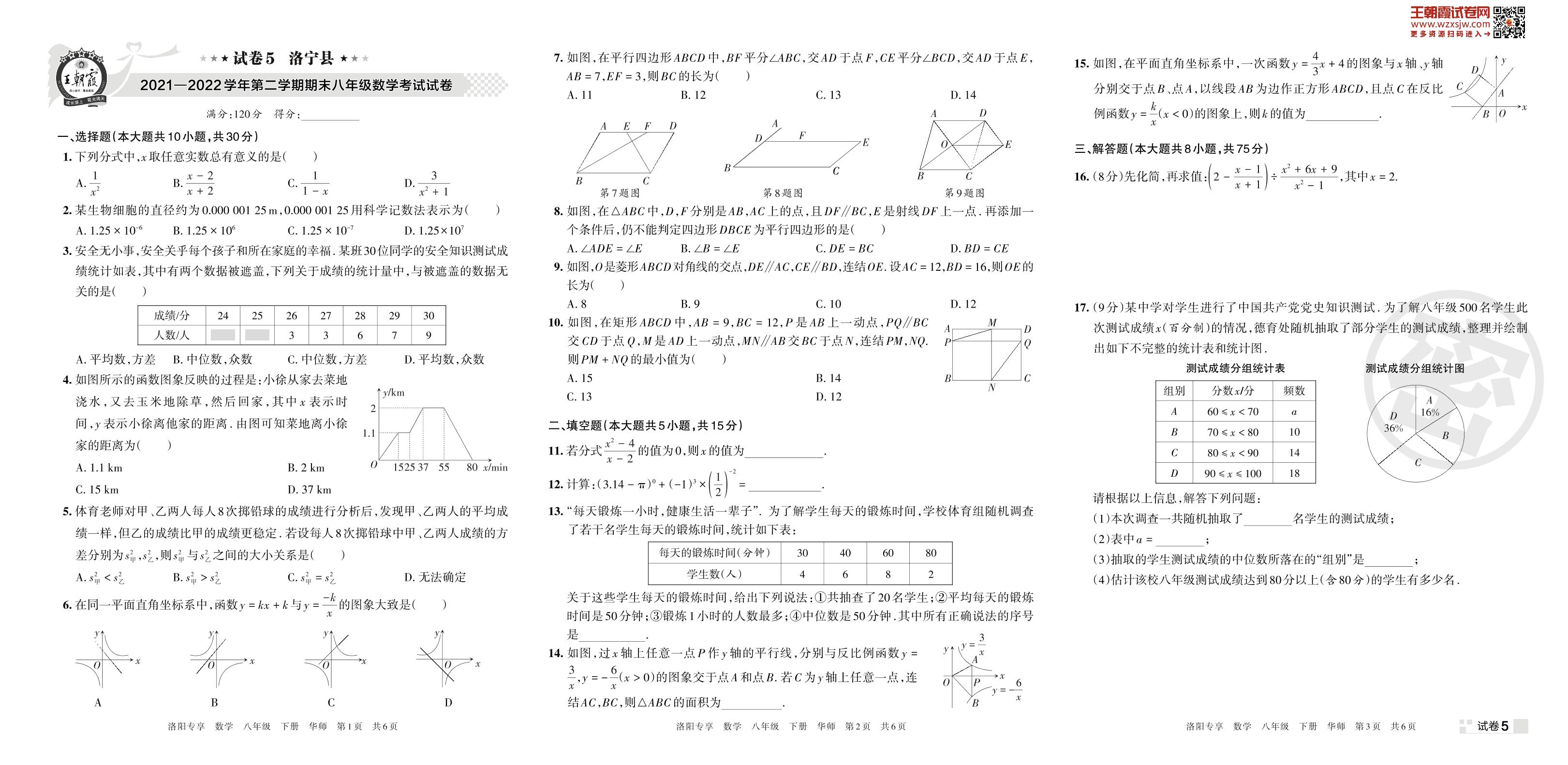 洛宁县2021—2022学年第二学期期末八年级数学考试试卷(华师版)【5】