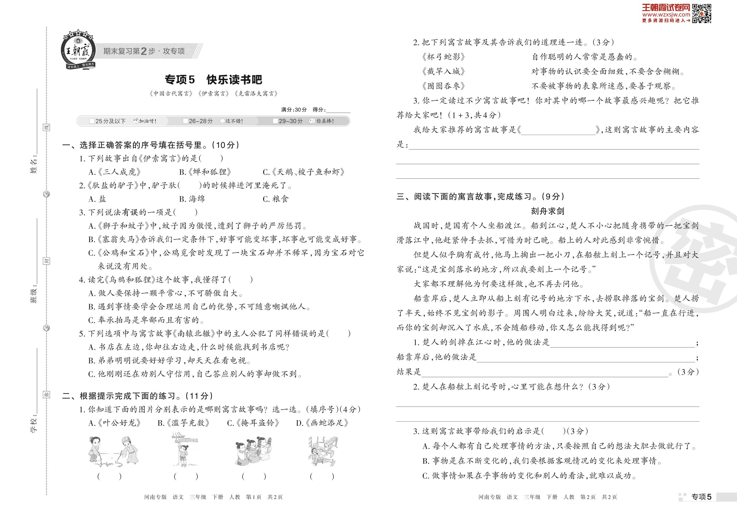 王朝霞期末专项卷——快乐读书吧三年级下册语文(人教版)_R230426164353478【5】