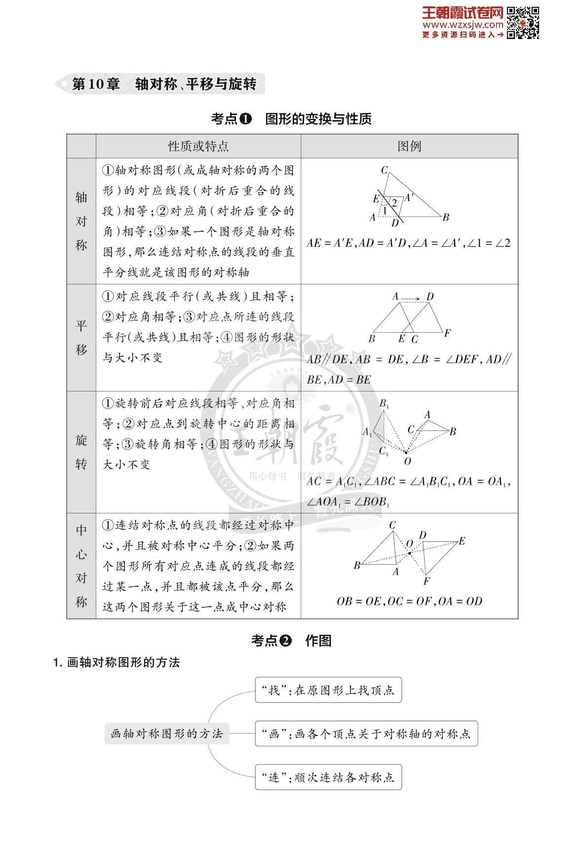 王朝霞期末知识梳理——第10章 轴对称、平移与旋转七年级下册数学(华师版)_R230426164746070