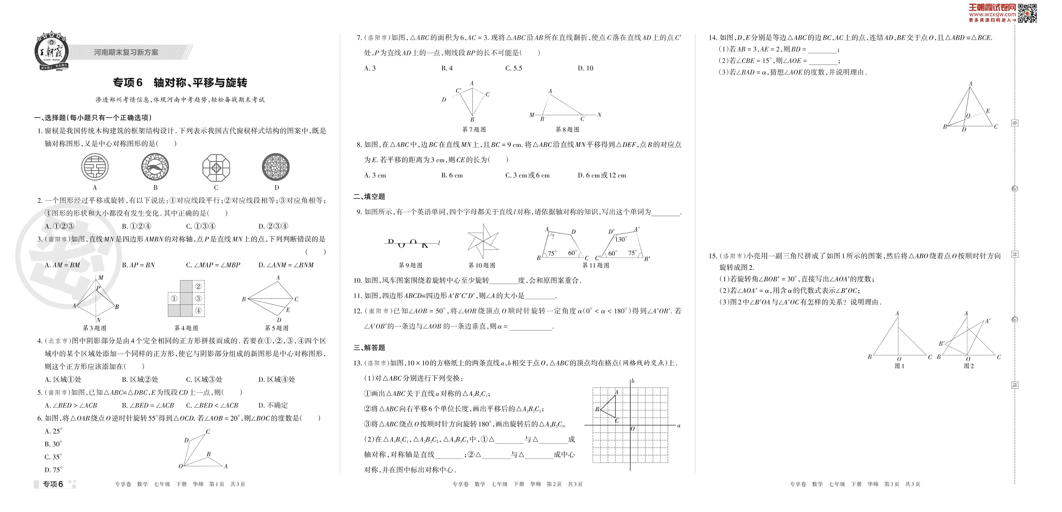 王朝霞期末专项卷——轴对称、平移与旋转七年级下册数学(华师版)【6】