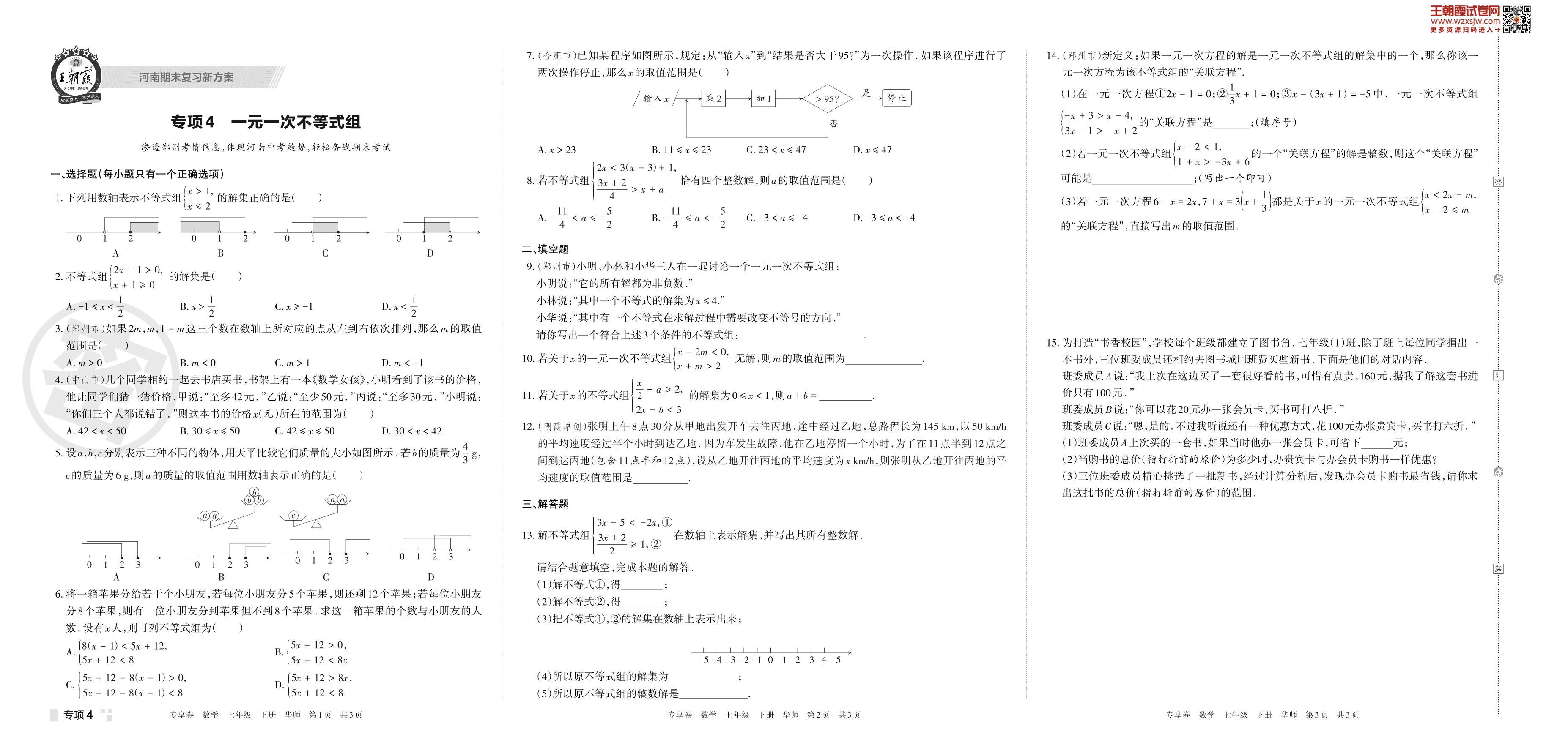 王朝霞期末专项卷——一元一次不等式组七年级下册数学(华师版)【4】