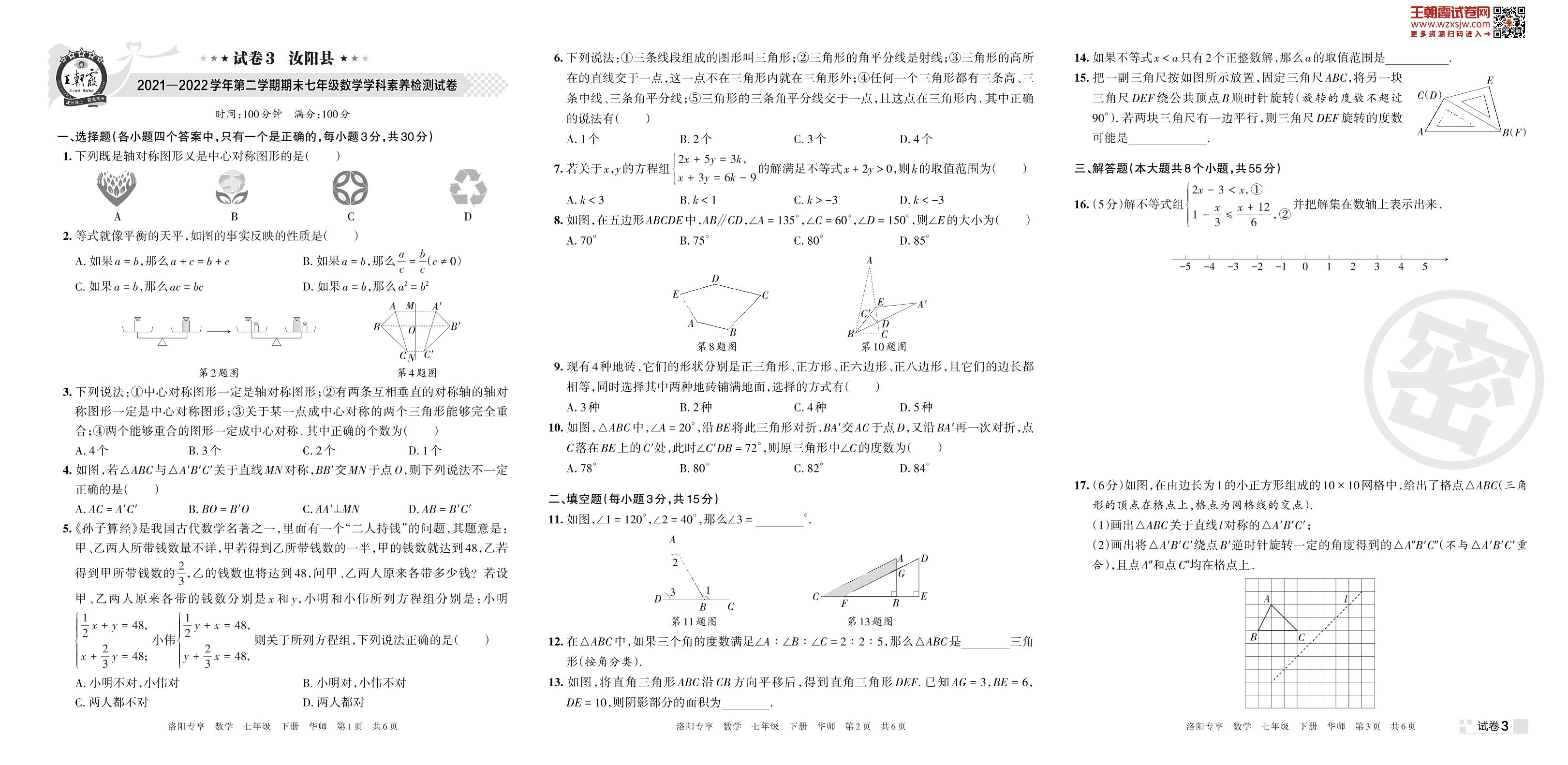汝阳县2021—2022学年第二学期期末七年级数学学科素养检测试卷(华师版)【3】