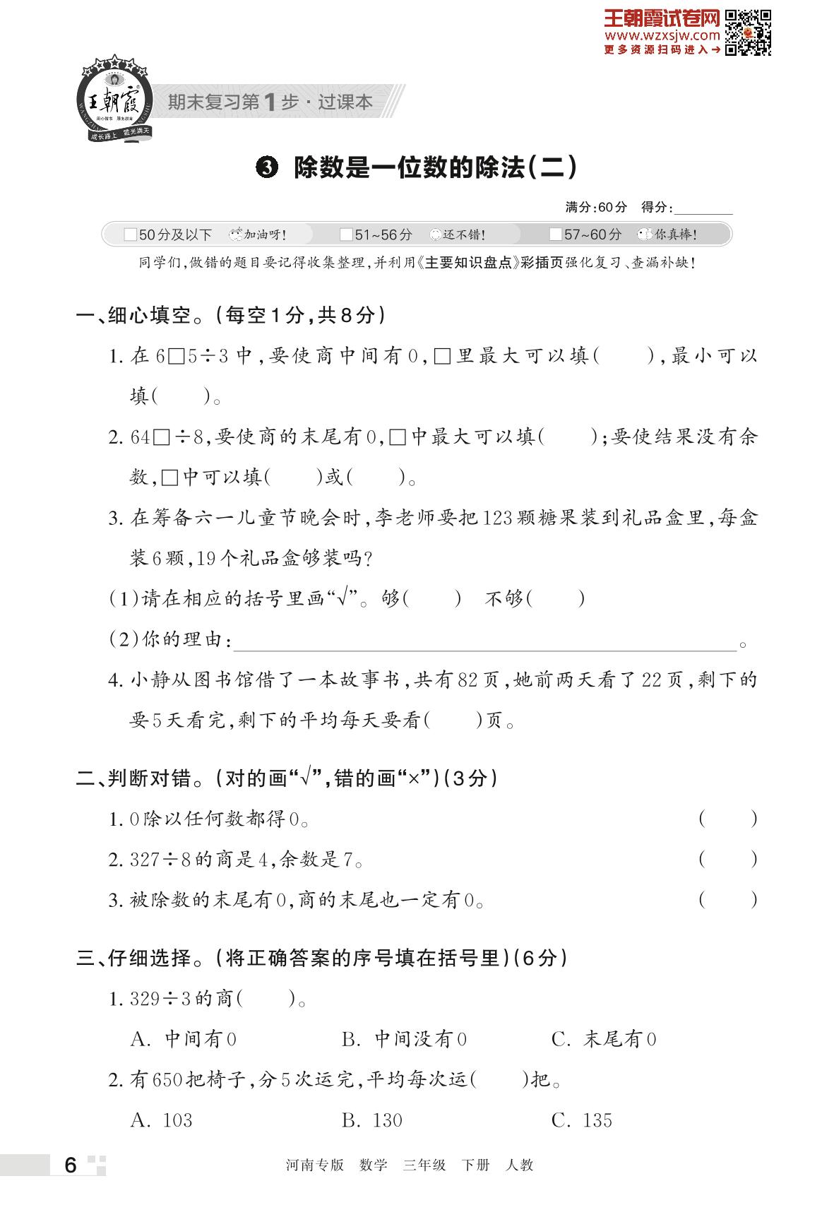 王朝霞期末过课本——3 除数是一位数的除法(二)三年级下册数学(人教版)_R230426165027390