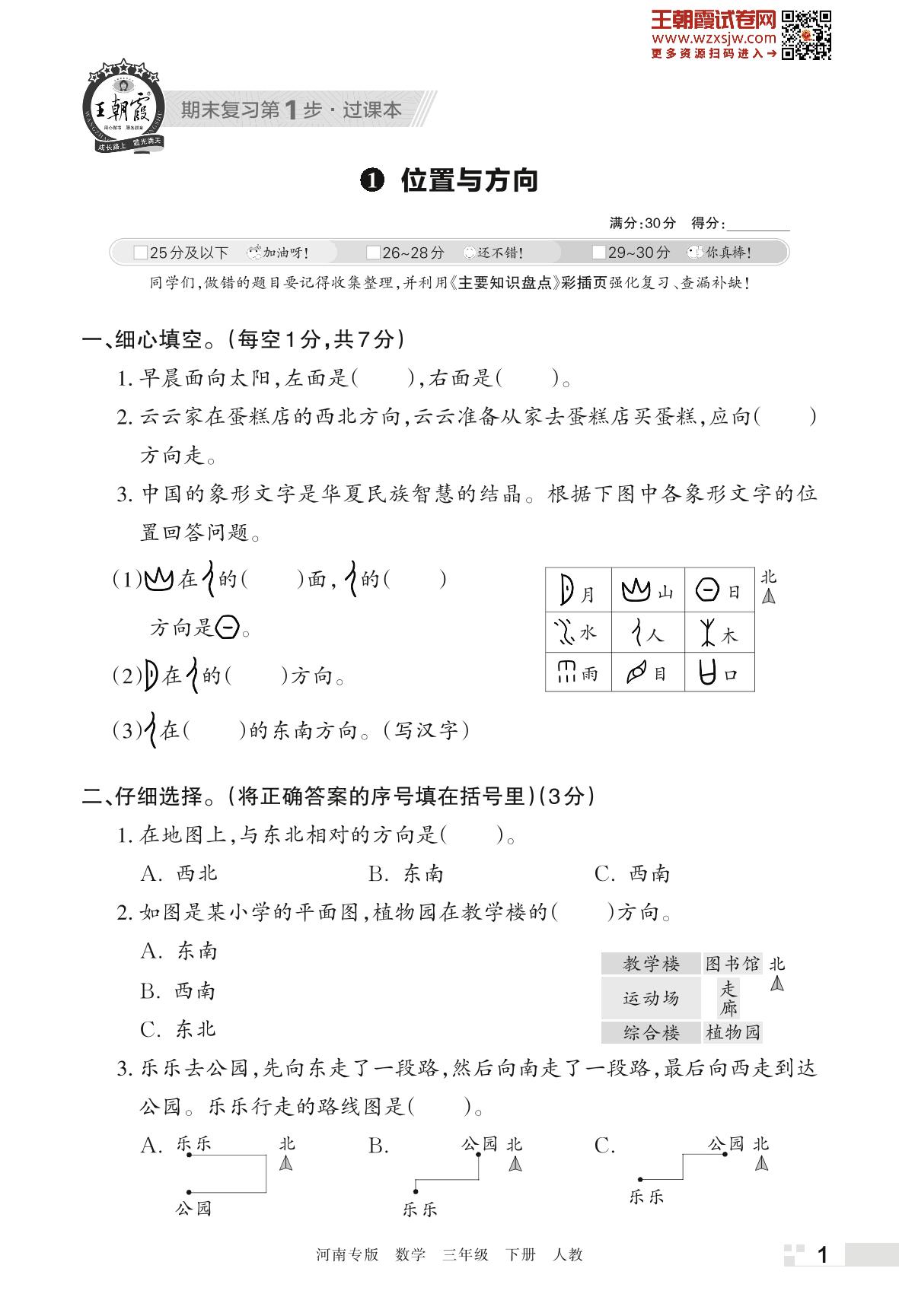 王朝霞期末过课本——1 位置与方向三年级下册数学(人教版)_R230426165027093