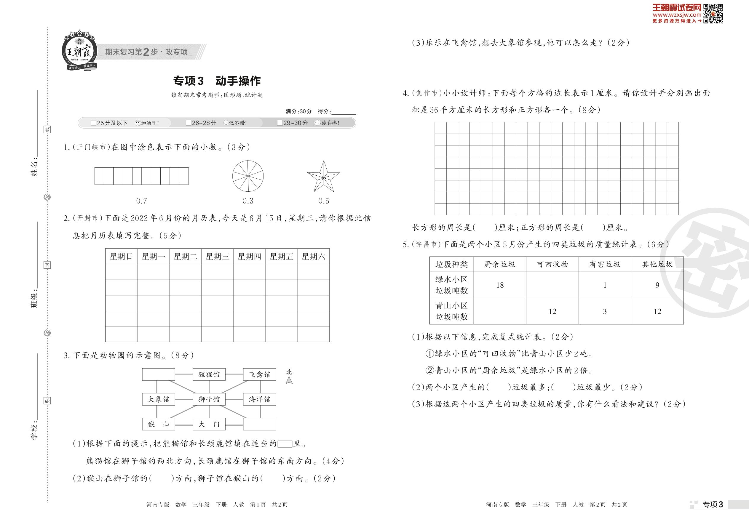 王朝霞期末专项卷——动手操作三年级下册数学(人教版)_R230426165027287【3】