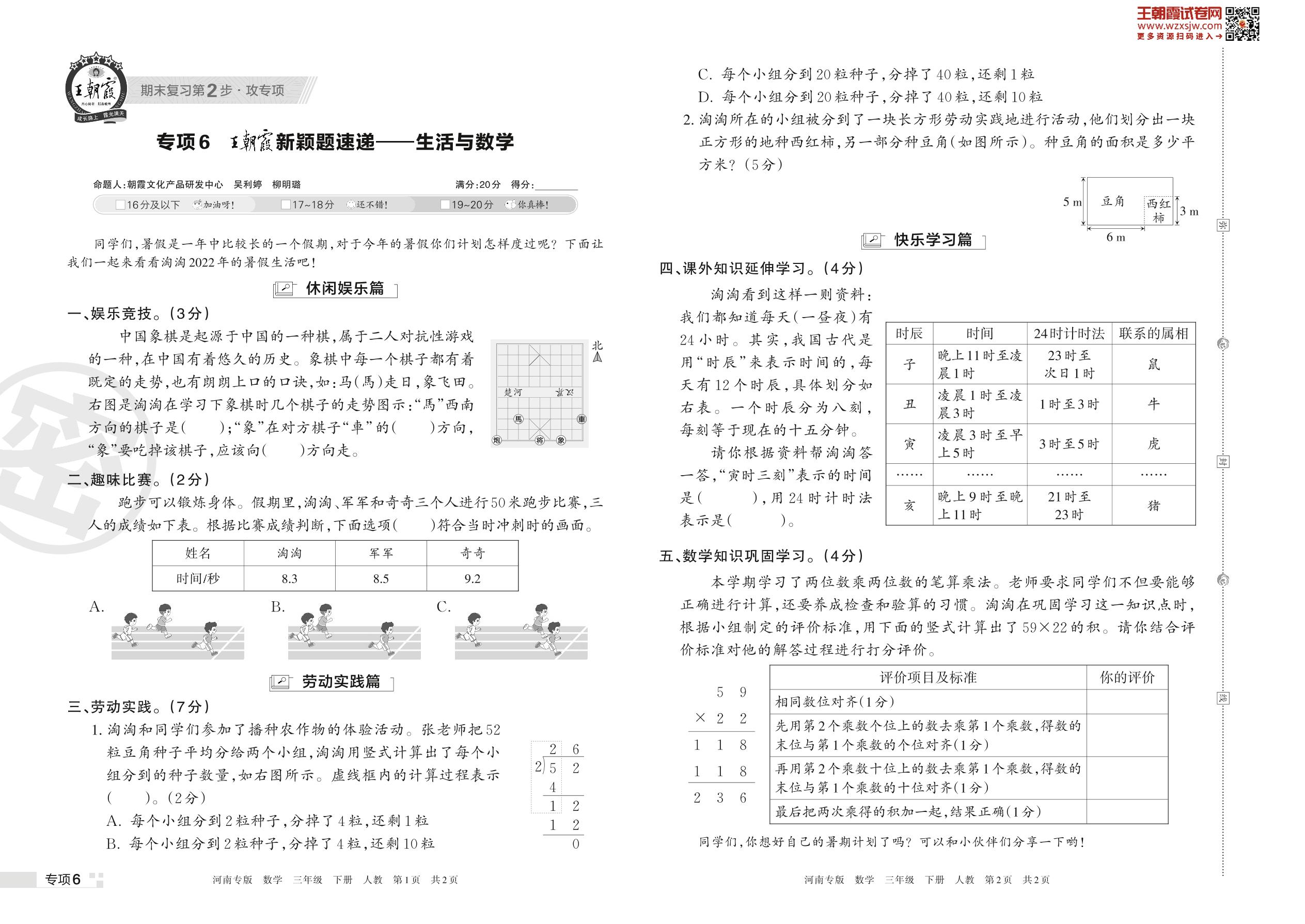 王朝霞期末专项卷——新颖题速递:生活与数学三年级下册数学(人教版)_R230426165027779【6】