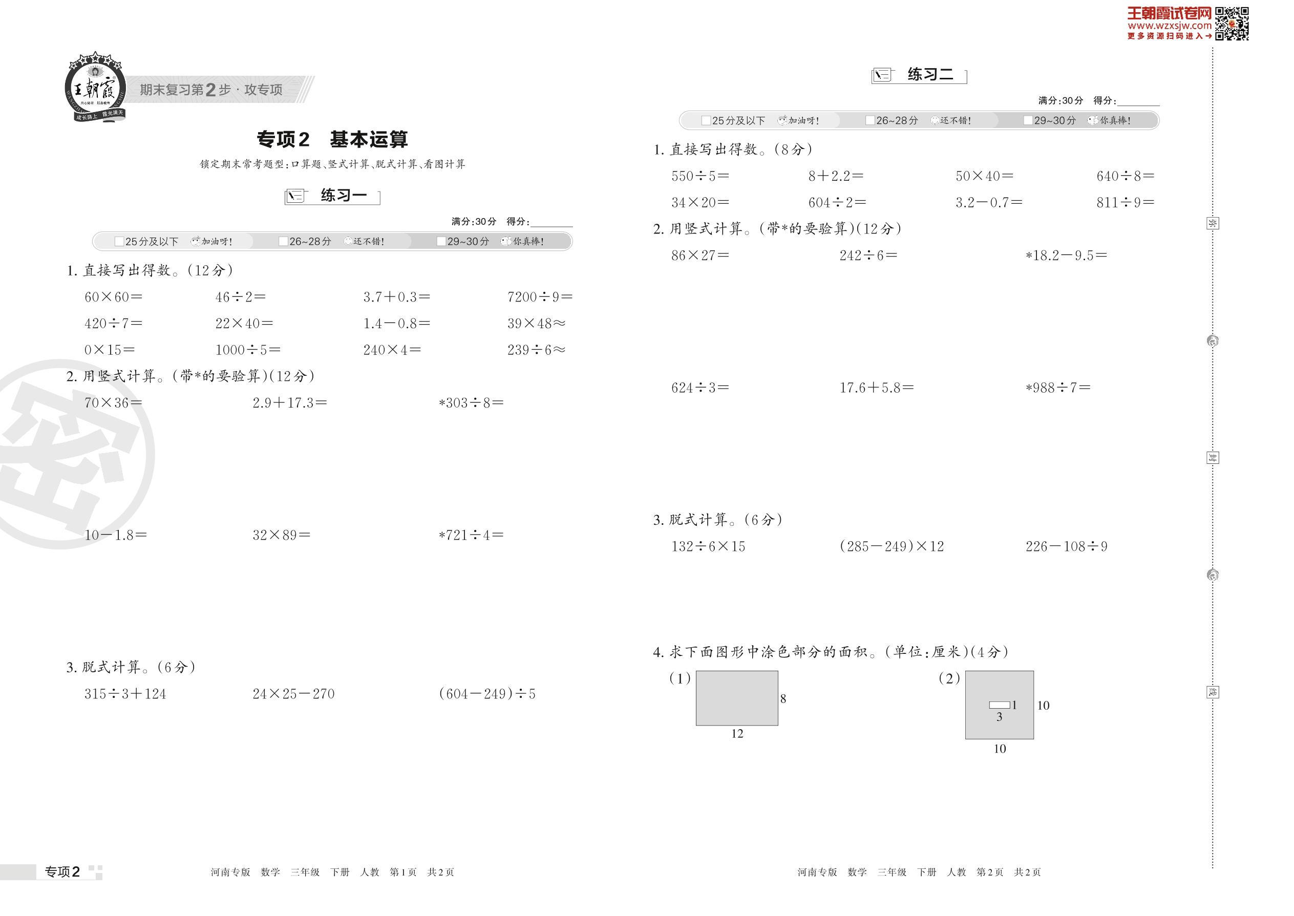 王朝霞期末专项卷——基本运算三年级下册数学(人教版)_R230426165027770【2】