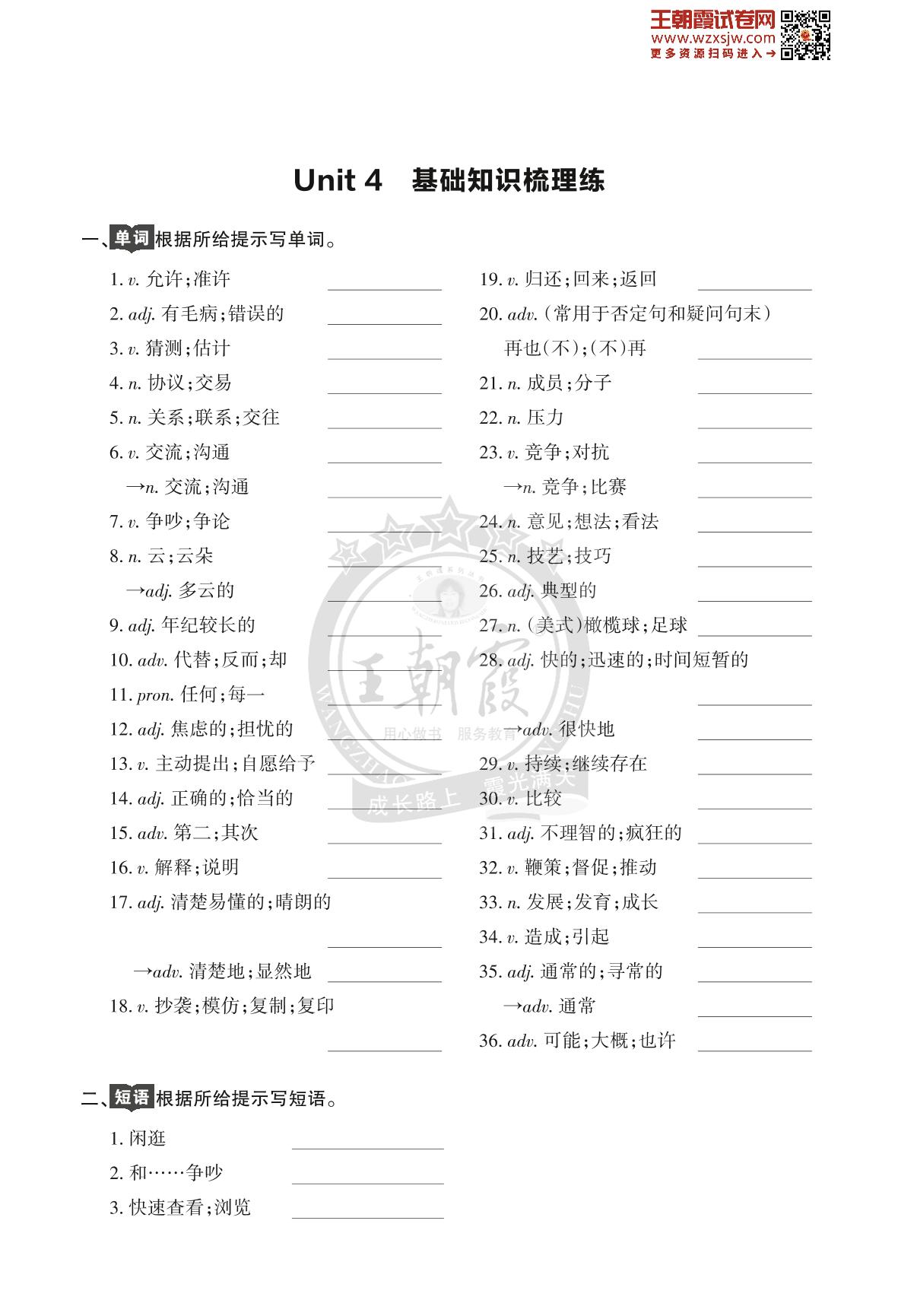 王朝霞期末过课本——Unit 4 基础知识梳理练八年级下册英语(人教版)_R230426170102332