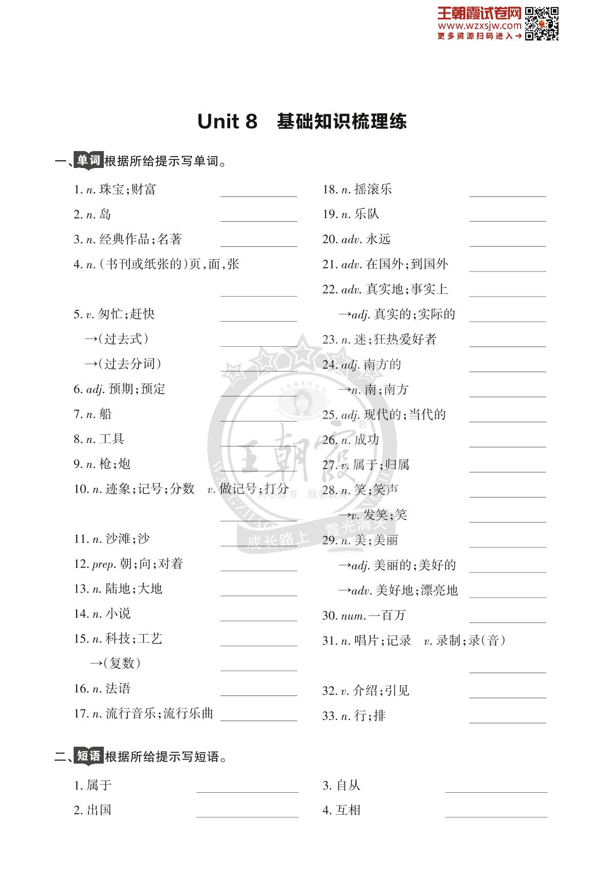 王朝霞期末过课本——Unit 8 基础知识梳理练八年级下册英语(人教版)_R230426170103629