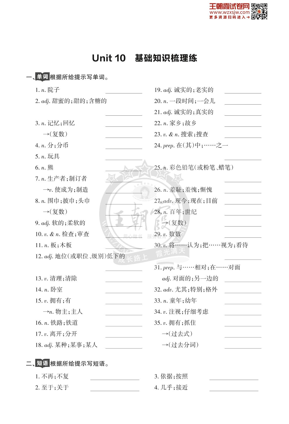 王朝霞期末过课本——Unit 10 基础知识梳理练八年级下册英语(人教版)_R230426170103370